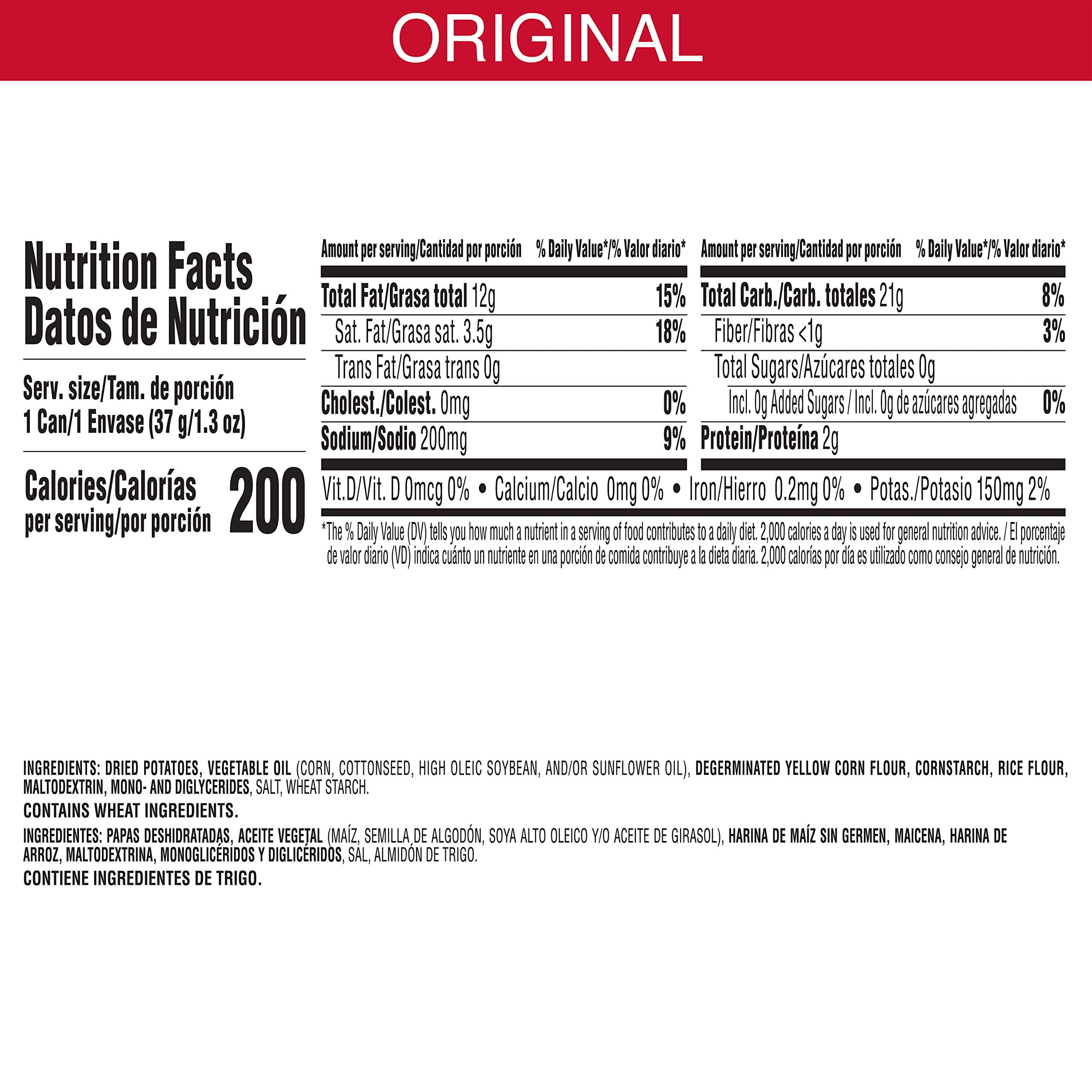 Original small stacks. Pringles Original Potato Crisps bring you the tantalizing taste of potato and you’ll be taking this gold standard all the way to the flavor bank. When you’re an original, you set the standard for how it’s done. Pringles potato crisps contain no articifical ingredients or preservatives. Grab this mega stack for game day. It is a delicious snack for any sporting event. This crunchy chip is packaged in a durable and resealable container that prevents the product from being crushed and maintains freshness. Find your favorite sport and watch it with your favorite snack on hand.Pringles Original Potato Chips, 1.3 Oz (Pack of 12)