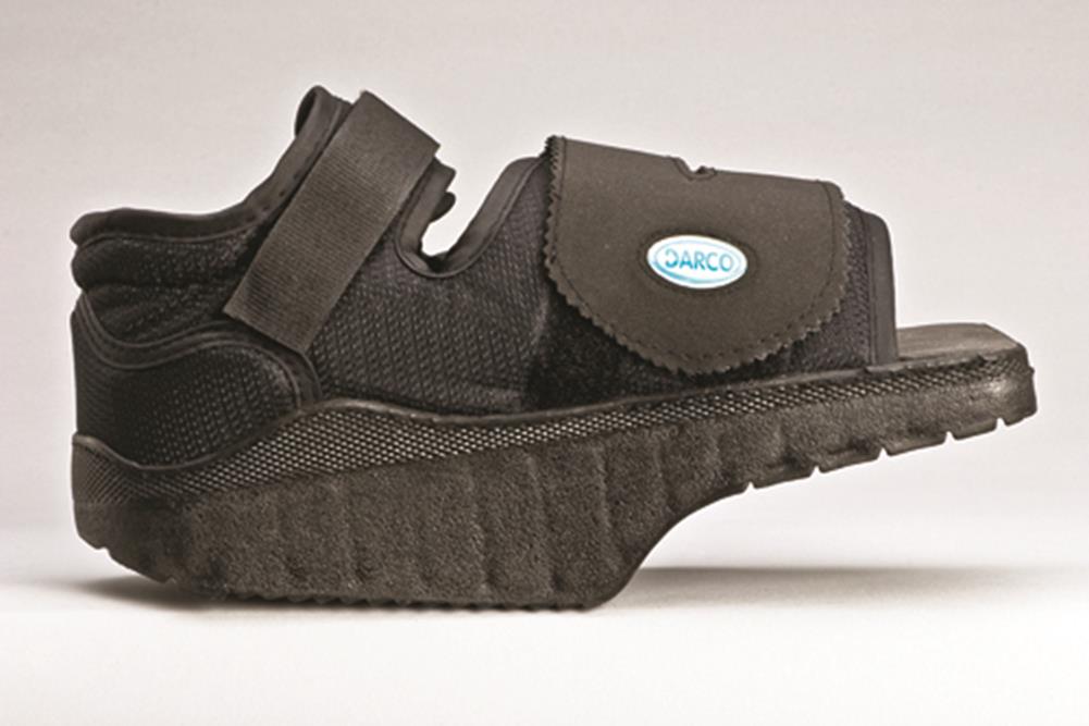 Promotes healing by shifting weight from the forefoot to the midfoot and heel. Provides additional toe protection and added stability. Removable insole is 10 mm thick and can be customized. Eliminates buckle pressure. Can accommodate dressings up to 17 inches in circumference