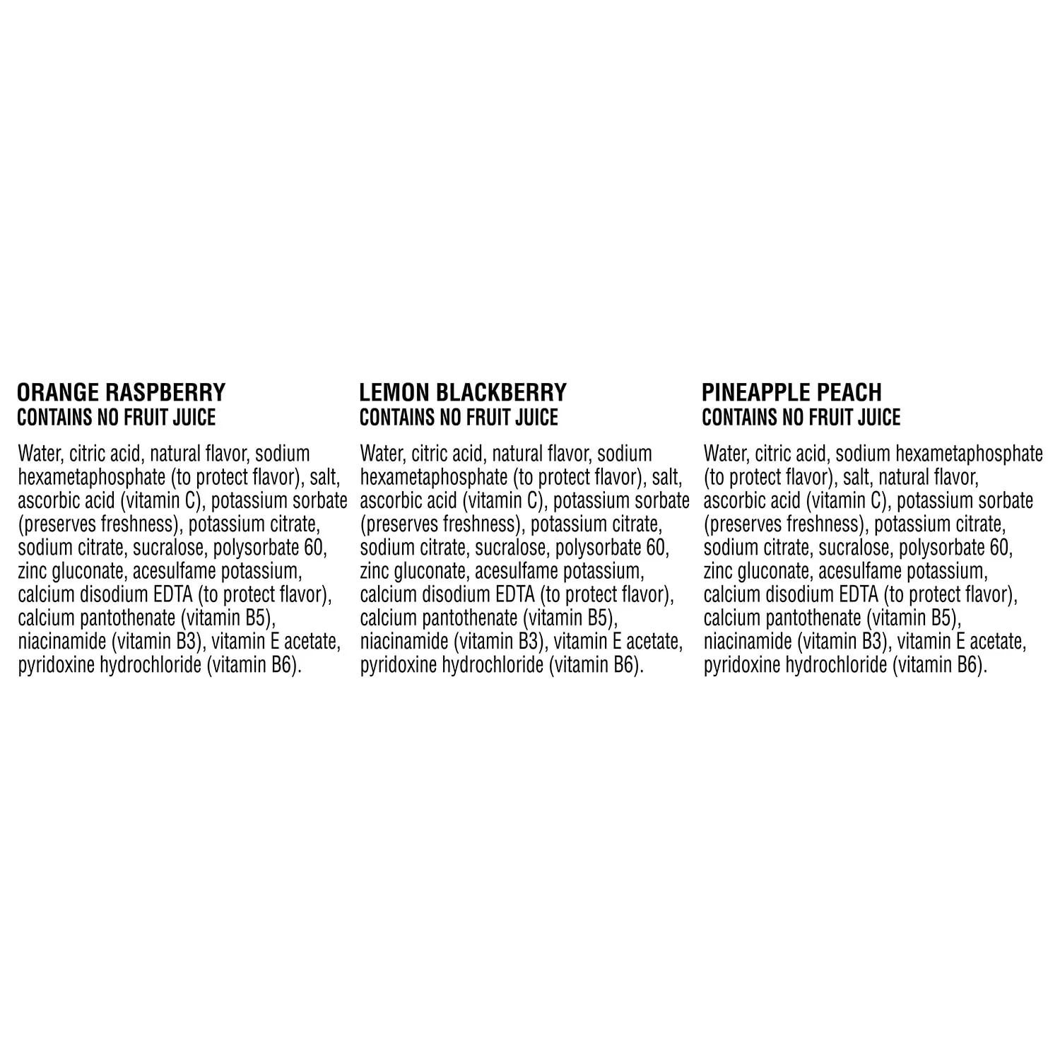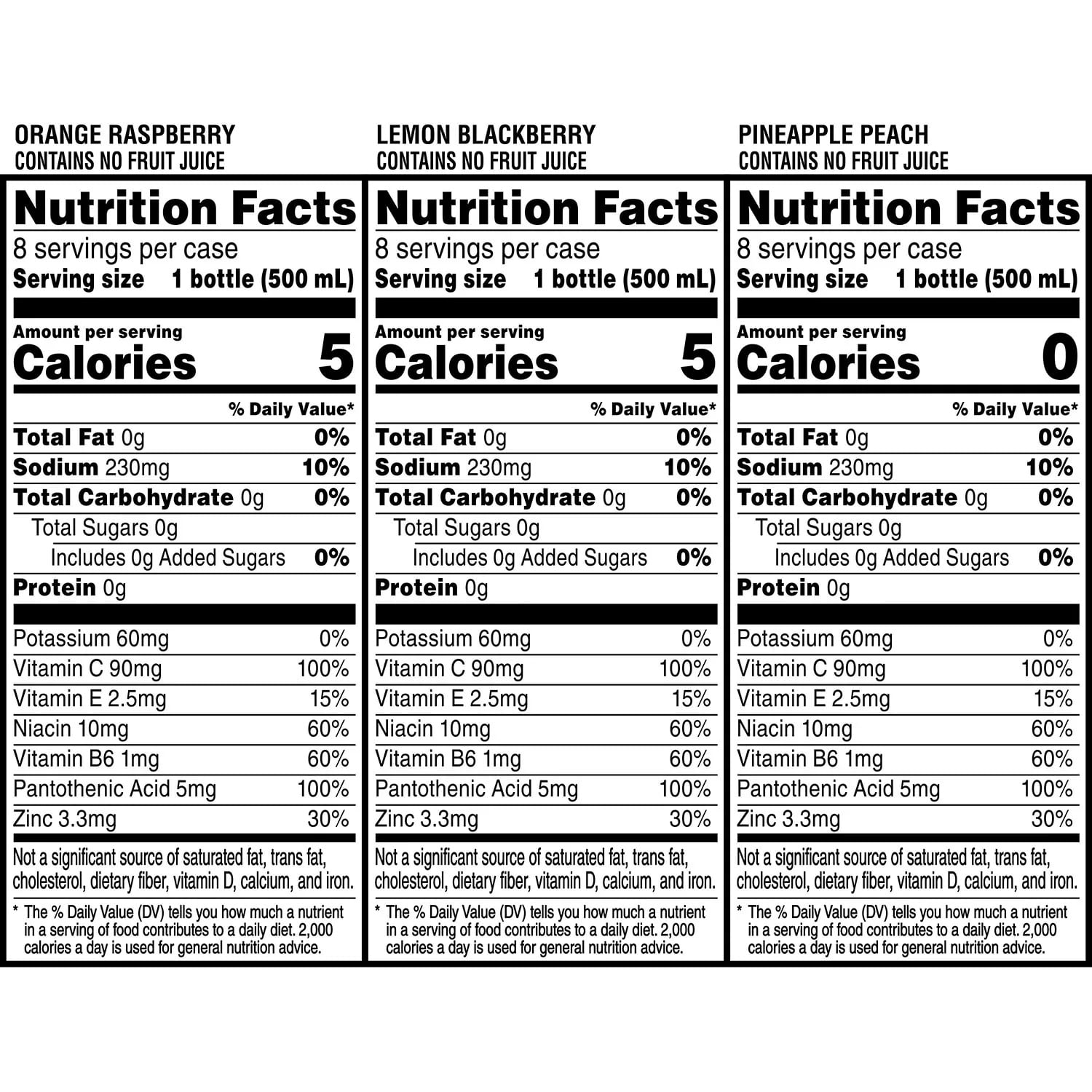 - Includes (24) 16.9 oz bottles of Propel Immune Support with Vitamin C and Zinc: 8 bottles each of Lemon Blackberry, Orange Raspberry and Pineapple Peach flavors