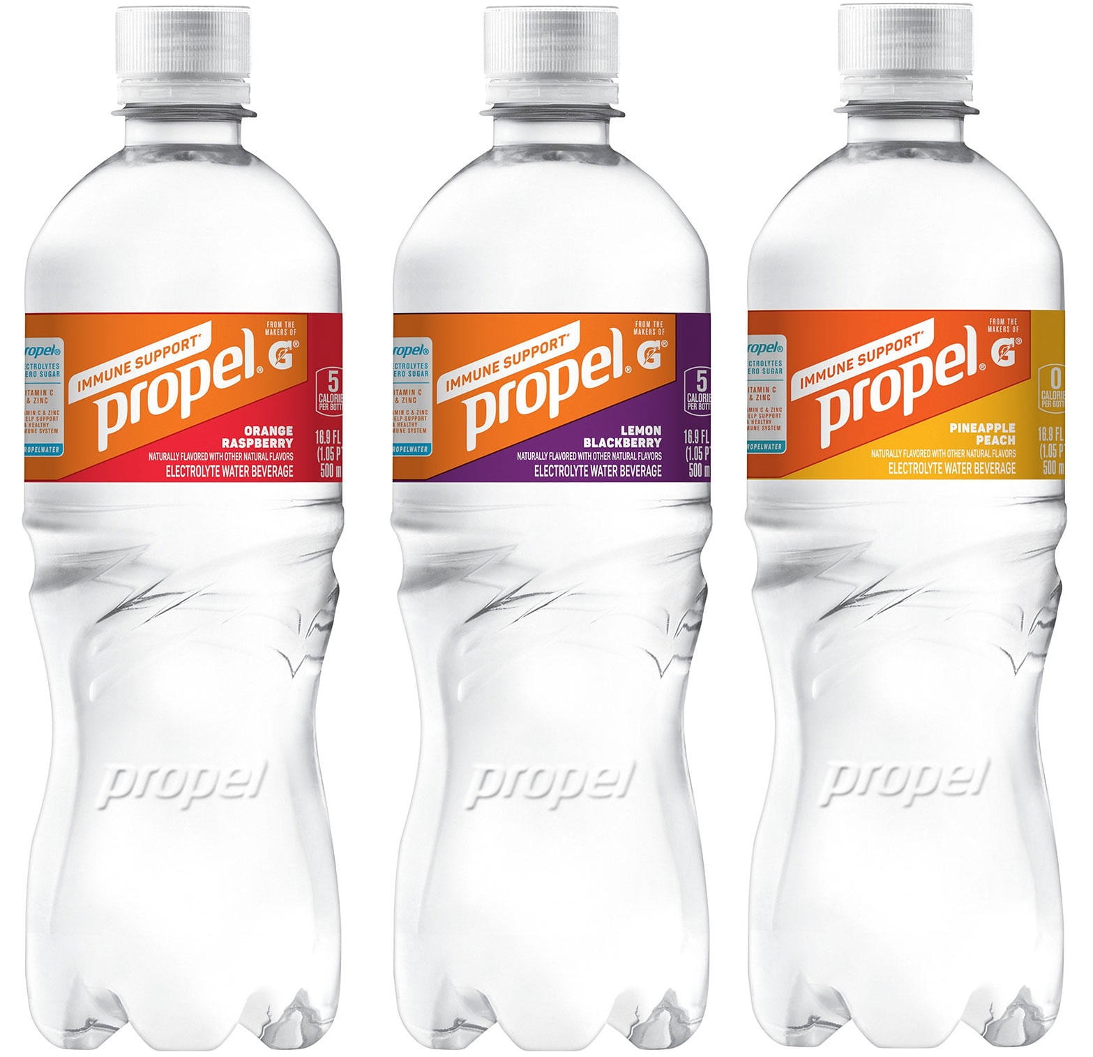 Propel Immune Support, the newest flavored water from the makers of Gatorade, helps support a healthy immune system with 100% of the recommended Daily Value of Vitamin C per bottle and an excellent source of Zinc. Gatorade-level electrolytes, zero sugar, plus vitamins, and only 5 calories per bottle.