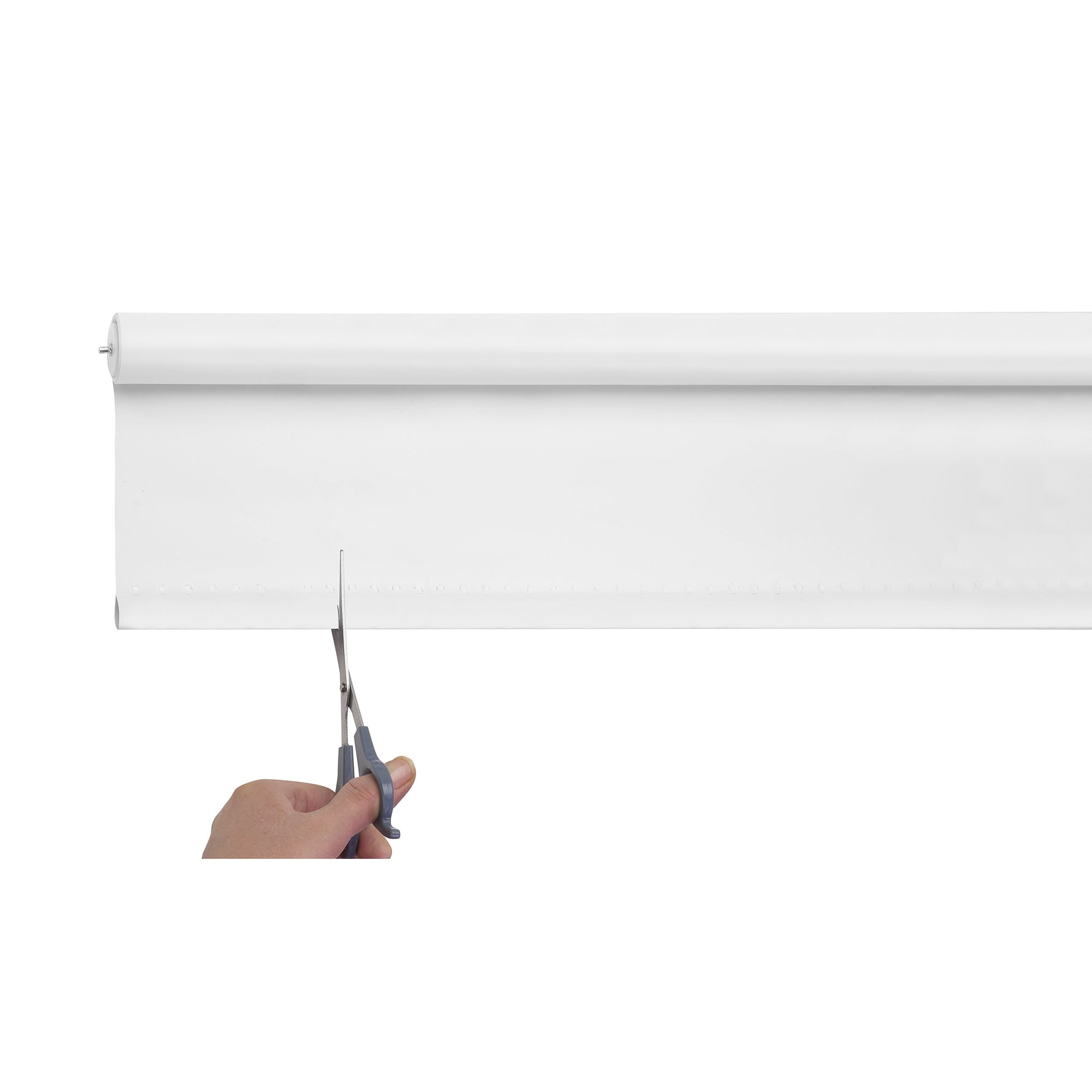 Pull Down Cordless Room Darkening Window Shade is a customizable, Room Darkening roller shade perfect for any window in the home or office. Made of soft, easy-care, micro-ridged vinyl that will cleanly Tear Down to the desired width. Its telescopic roller has a cardboard insert underneath the vinyl fabric that is perforated at every half inch. The Shade’s plastic handrail is also scored at half inch increments to snap down to the new width of the shade without any additional tools. To operate the Pull Down Cordless Room Darkening Window Shade simply raise or lower the handrail. Size 37 will fit windows from 22 inches to 37 1/4 inches; size 55 will fit windows from 37 inches to 55 1/4 inches; and size 73 will fit windows from 55 inches to 73 1/4 inches. Brackets accommodate inside or outside mounting and detailed instructions are included. Tools needed: Screwdriver and scissors.