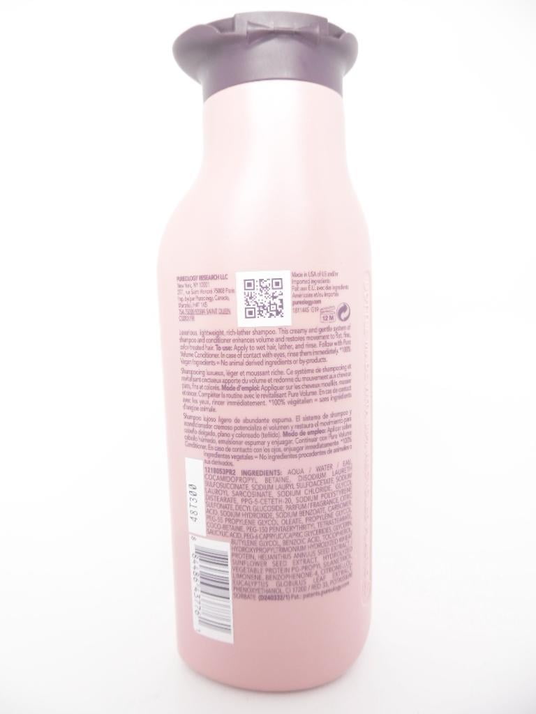 Pureology Pure Volume Shampoo enhances volume and restores movement to flat, fine color-treated hair with key ingredients Wheat Protein and Eucalyptus Leaf Extract and a signature aromatherapy blend of Pink Grapefruit, Wild Rose, and Cedarwood.