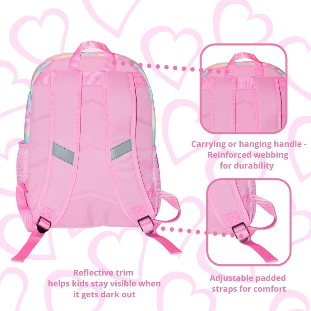 - A BACKPACK DESIGNED FOR KIDS – An eye-catching tie-dye pattern and a functional design come together to make this bookbag a fun addition to your child’s school and travel essentials. Our girls backpack has two zippered compartments, one main and one front, padded, adjustable shoulder straps, and two mesh side pockets, while the durable top handle is perfect for hanging.