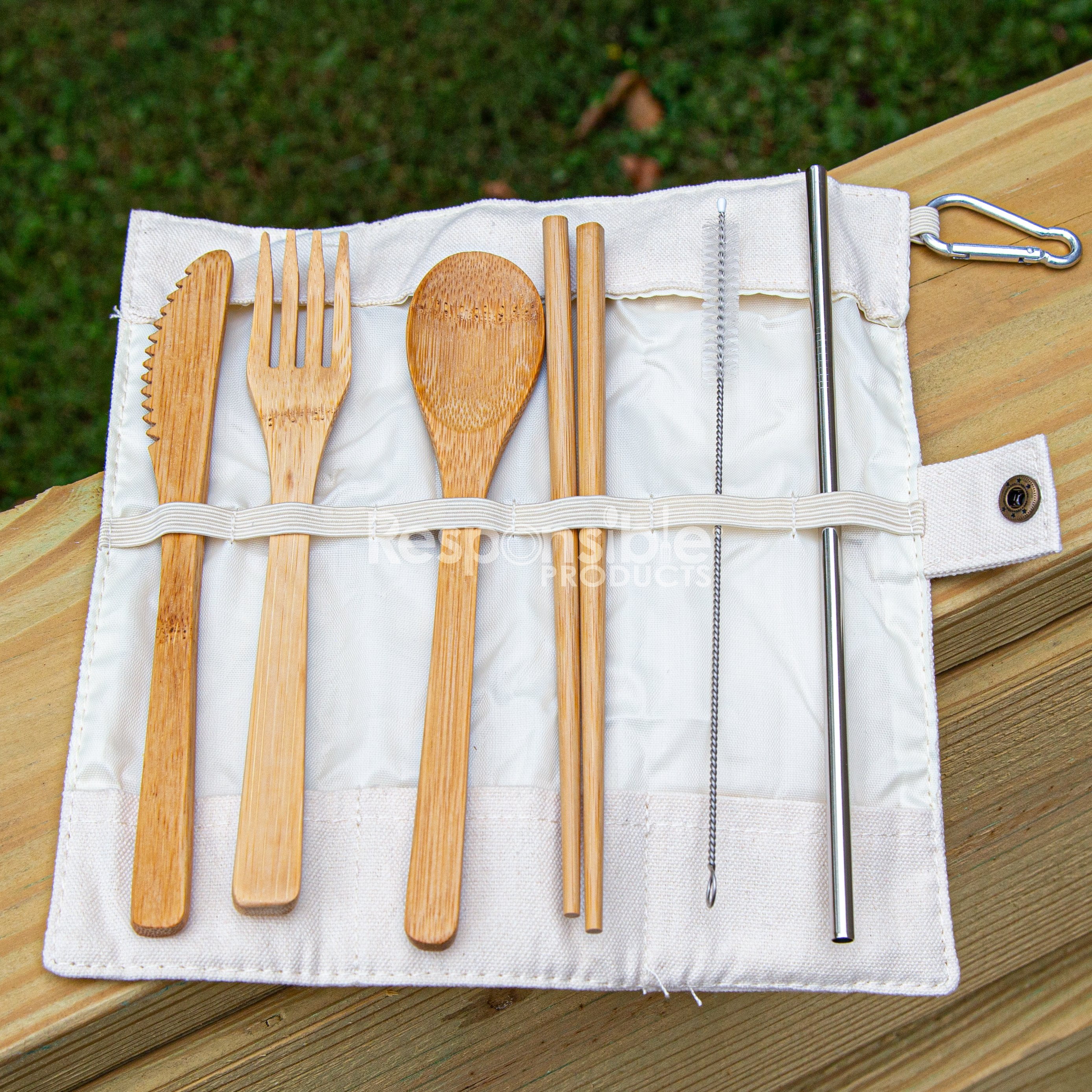 - Pouch Design: the lightweight jute pouch keeps the four bamboo travel utensils together and is easy to carry, because of the D-Buckle design, you can hang it on outside of the backpack or the hook of the kitchen wall
