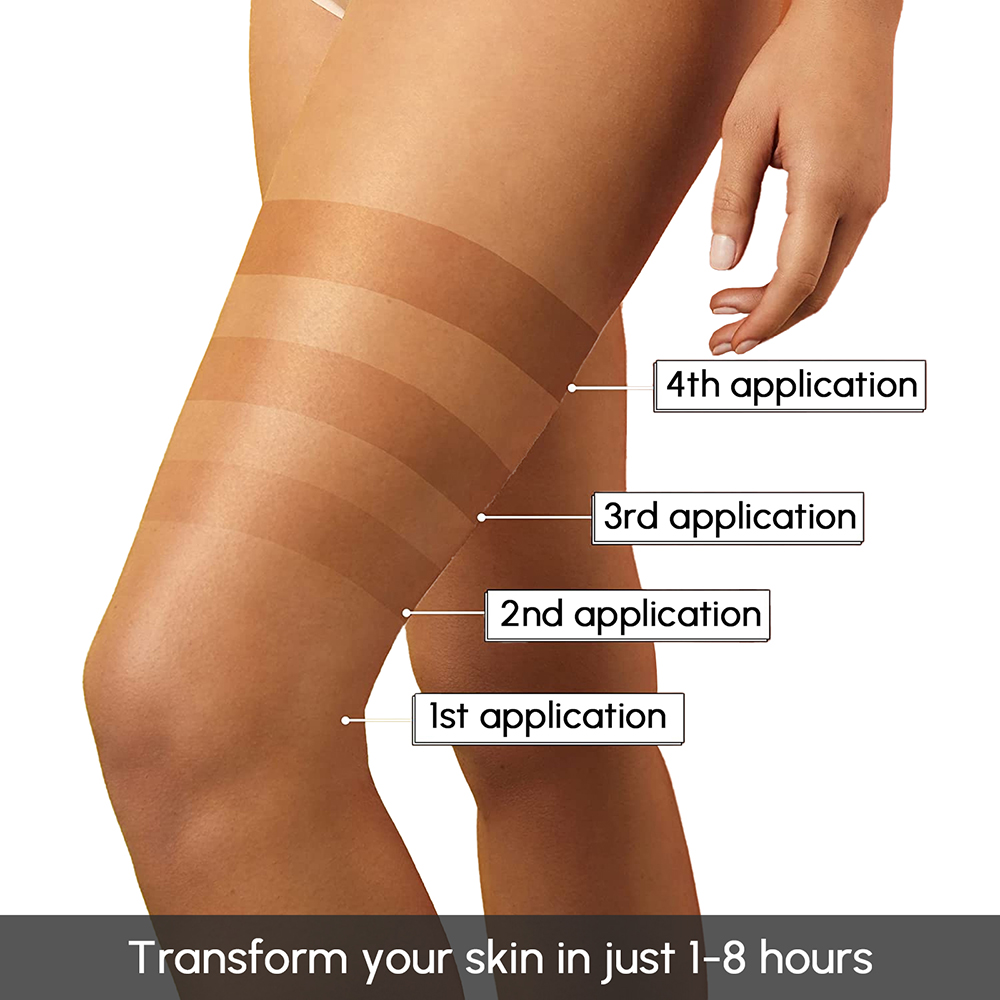 LONG-LASTING& FAST-DRYING – Our self tanning mousse is tinted for precise application, and it dries in just 60 seconds, so you get a beautiful tan without staining your clothes or leaving dark spots on towels and sheets. It only takes up to 2 hours to develop a smooth even sun-kissed look for up to 7 days.