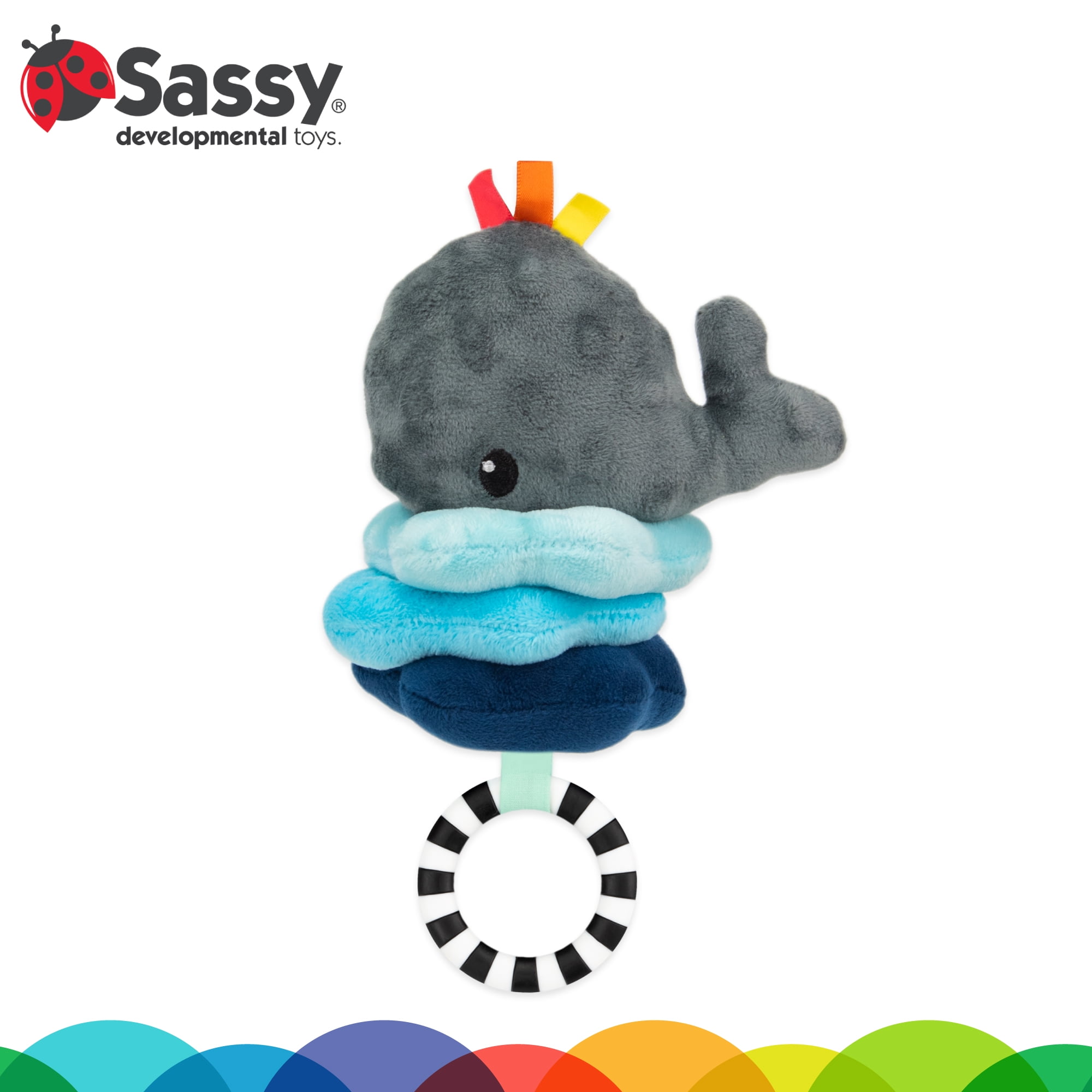 Sassy Wavy Whale Jitter Sensory Hanging Stroller Pull Down Baby Toy- 0+ Months