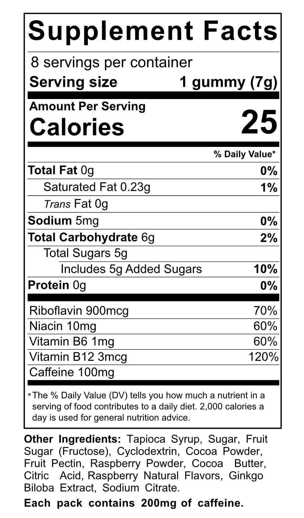 - ONE PACK ENERGY GUMMIES = 2 CUPS OF COFFEE: 200 mg of caffeine in convenient pocket-sized packs