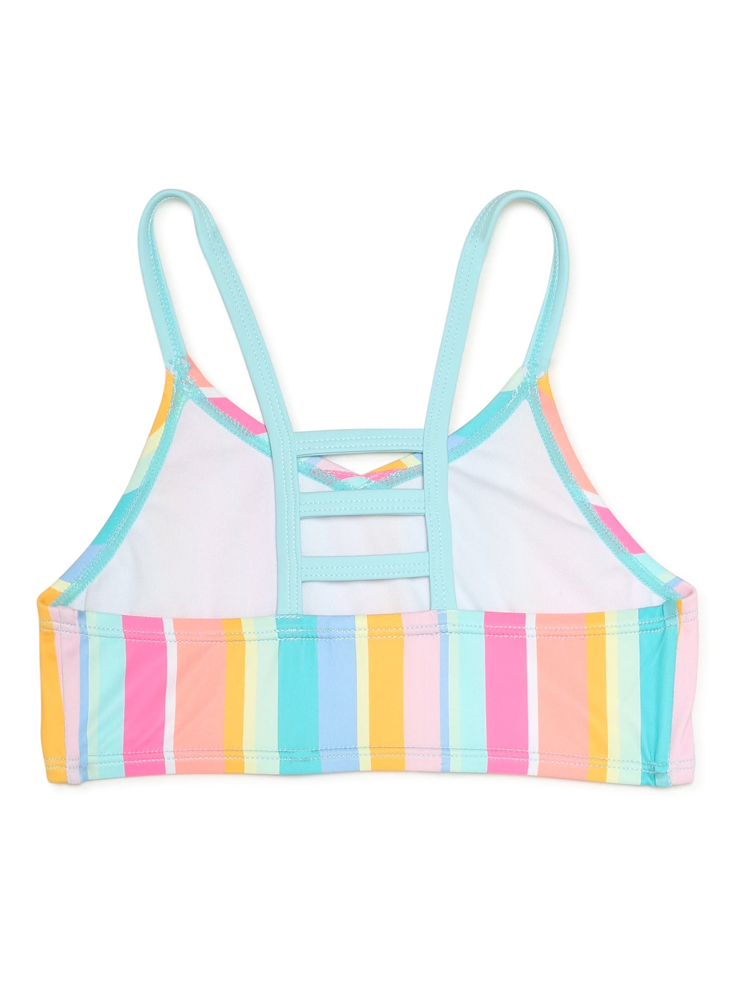 Keep it simple and get your swim suit and cover-up together with this ALL NEW 3pc set. The swim suit features UPF50+ sun protection, quick drying 4 way stretch fabric for comfort and protection. The 2pc multi color stripe swim suit is designed for comfort and has an excellent fit. It comes with a knot front, sunset graphic tank top tee shirt that can be worn as a cover-up or separately. Both are machine washable.