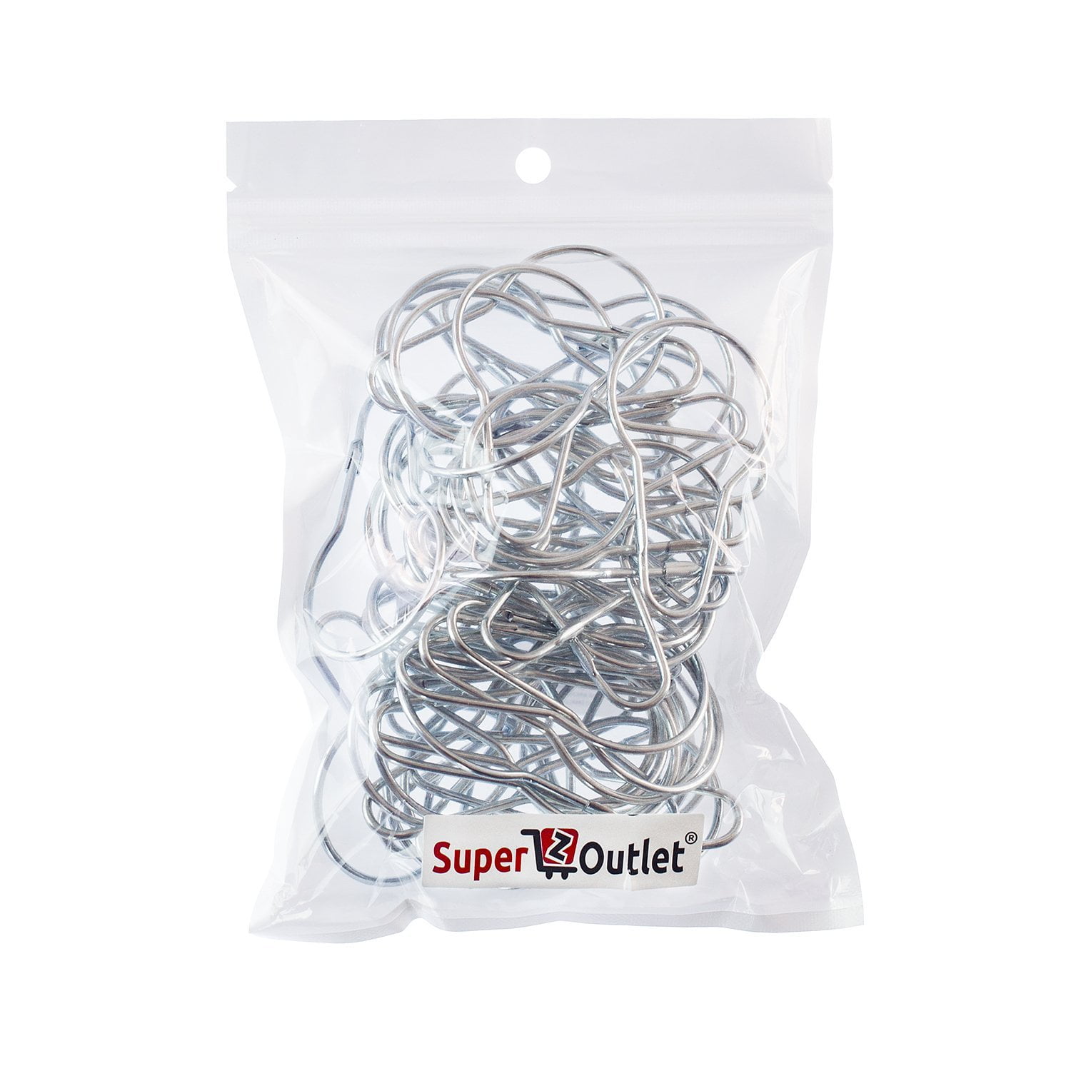 These silver hanging rings measure 2.75" inches tall x 1.5" inches wide at the widest point. Comes in a pack of 50 silver shower curtain rings.