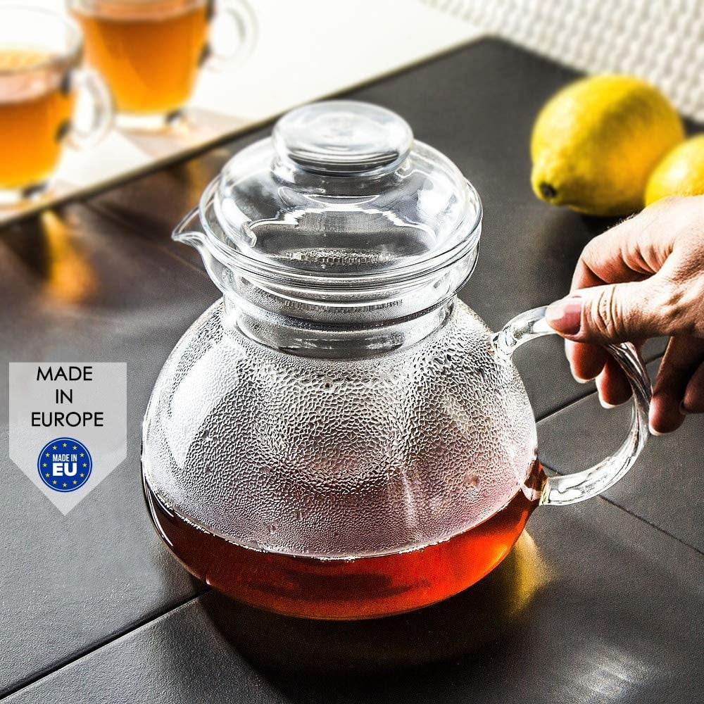 Simax Glassware Teapot | Microwave and Stovetop Safe, Heat, Cold, and Thermal Shock Resistant Borosilicate Glass, Makes a Stunning Presentation (1.5-Quart)