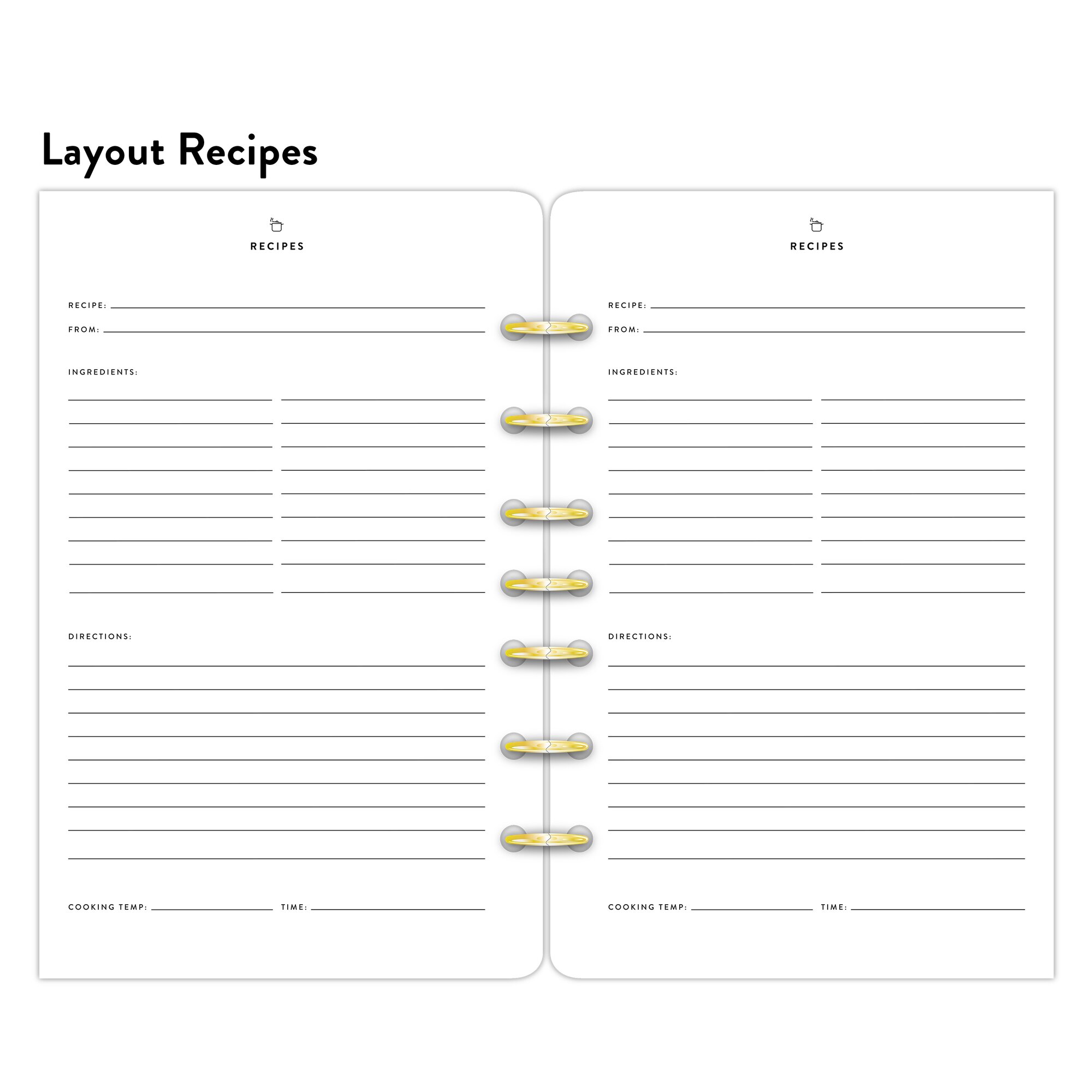 - Pages include lined pages for grocery lists, recipes and go-to meals, plus opening space for daily meal plans Monday – Sunday