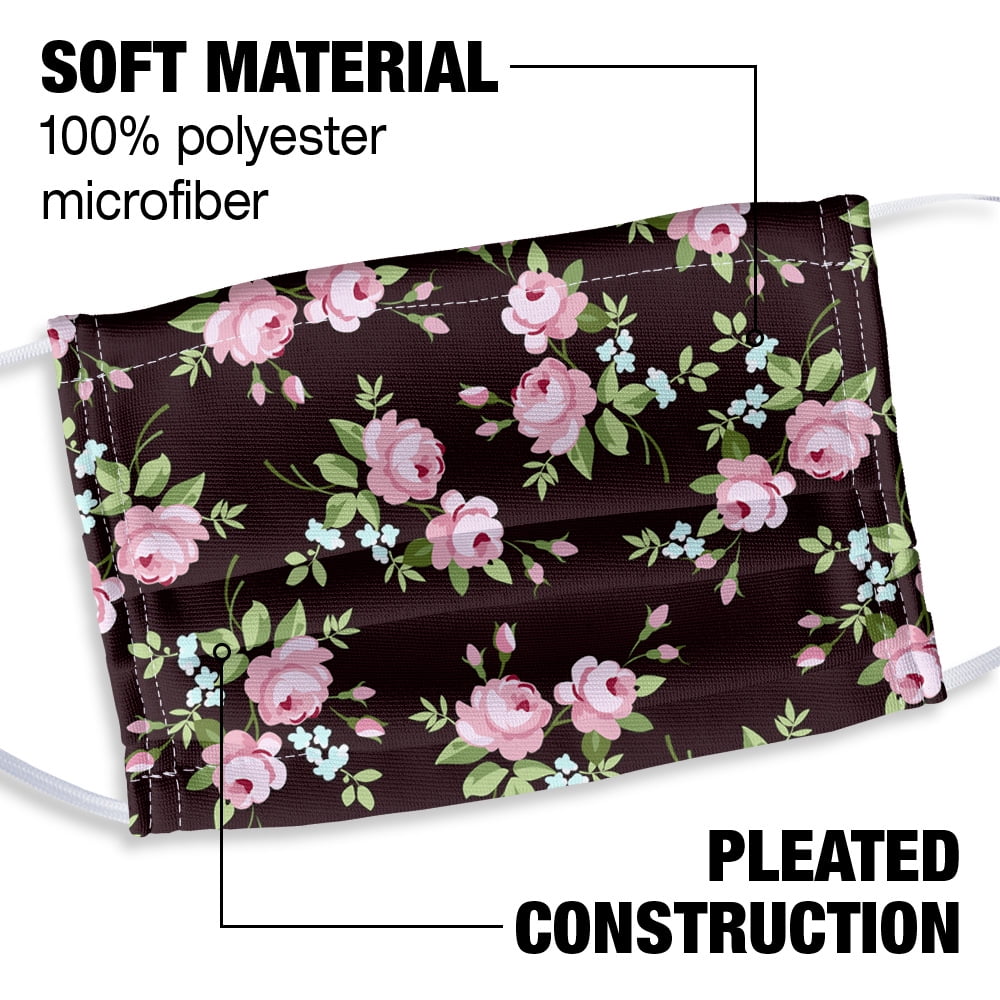 - SMALL PINK FLOWERS PATTERN FACE MASK – Our 100% polyester mask is made with 1 layer that is printed with your favorite design.