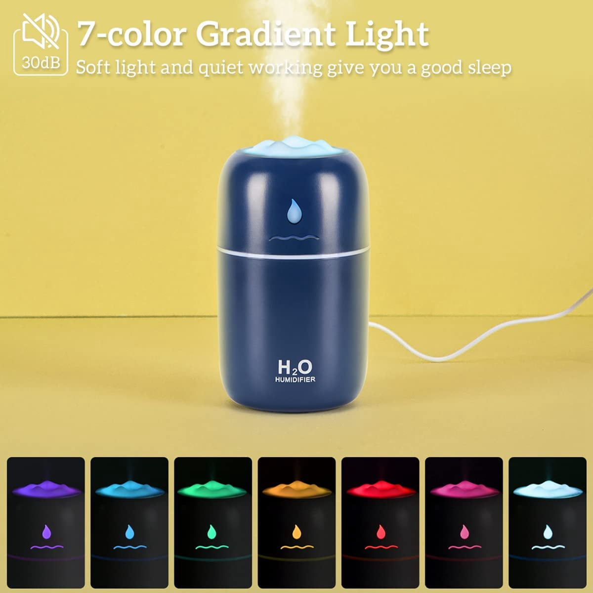 LARGE SPRAY & AUTO SHUT-OFF: The mini humidifier can spray large and fine cold mist (spray 45ml/h) through ultrasonic oscillation. It will effectively improve the air humidity in small and medium rooms. Air humidifier will automatically shut off when water runs out. Safety in use.