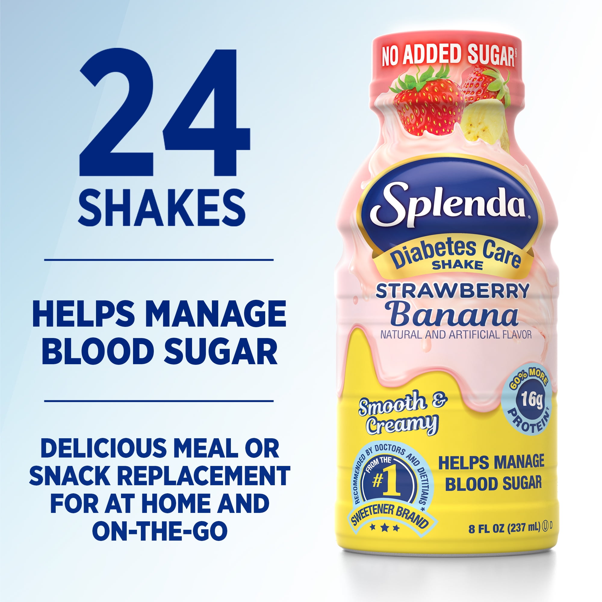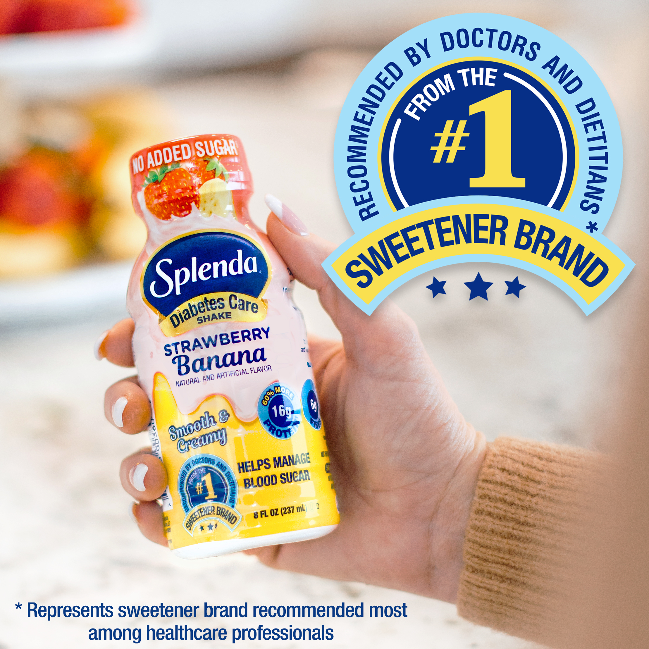 We know how important it is for people with diabetes to manage their blood sugar levels. SPLENDA Diabetes Care Shakes were developed specifically to help manage blood sugar and help reduce blood sugar spikes while tasting delicious and easily fitting into your daily life. These new SPLENDA Strawberry Banana Diabetes Care Shakes are SO DELICIOUS, you’ll forget it’s good for you! This shake is smooth and creamy with a delicious balance of strawberry and banana taste. With NO ADDED SUGAR, 16 grams of high-quality protein, a unique blend of slow-digesting carbohydrates, and good-for-you fats, Splenda Diabetes Care Shakes are a delicious meal or snack replacement to help manage blood sugar and help reduce blood sugar spikes. It’s easy to see why Splenda is the no. 1 sweetener brand recommended by Doctors and Dietitians.