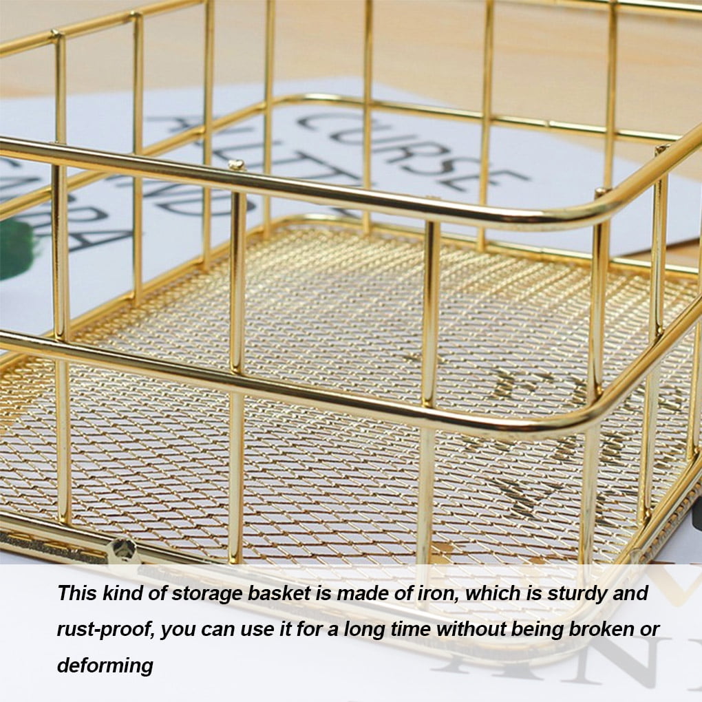 - The iron storage basket works with a strong bearing capacity, enough to meet your different needs, and the gold color is beautiful, decorate your room beautiful