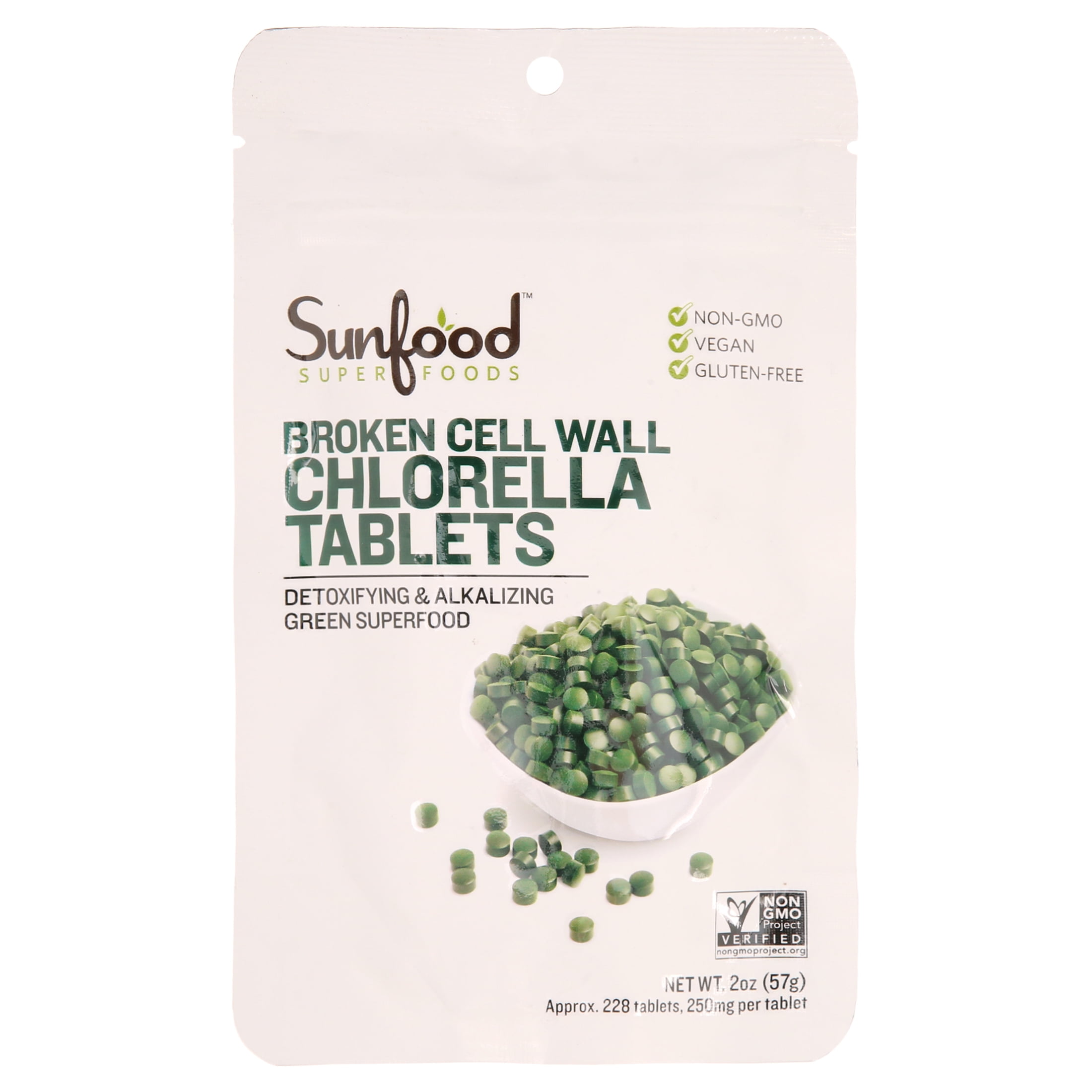 Vegan Chlorella Tablets Chlorella is an incredible, multi-faceted superfood that is made up of 66% protein and boasts an array of nutrients including vitamin A and iron. A microscopic single-celled plant that grows in fresh water, chlorella’s abundance of chlorophyll gives it a deep, emerald-green color. A potent superfood, chlorella is a great way to introduce detoxifying, alkalizing foods into your diet. The Sunfood Difference? Our chlorella tablets are processed from pure chlorella powder. The chlorella is gently dried after harvest, then the cell walls are broken using a unique, chemical-free centrifuge process. Afterwards, the chlorella powder is stamped into tablets without the use of binders, fillers, or additives. We source our chlorella from the cleanest sources in the world, typically South Korea or Taiwan. All of our chlorella is grown indoors in a controlled environment to avoid any possible atmospheric contamination that may occur as with outdoor grown chlorella. Each batch is tested in third party laboratories to ensure purity. Although the USDA does not currently provide organic certification for indoor grown chlorella, our chlorella is grown and processed to organic standards.