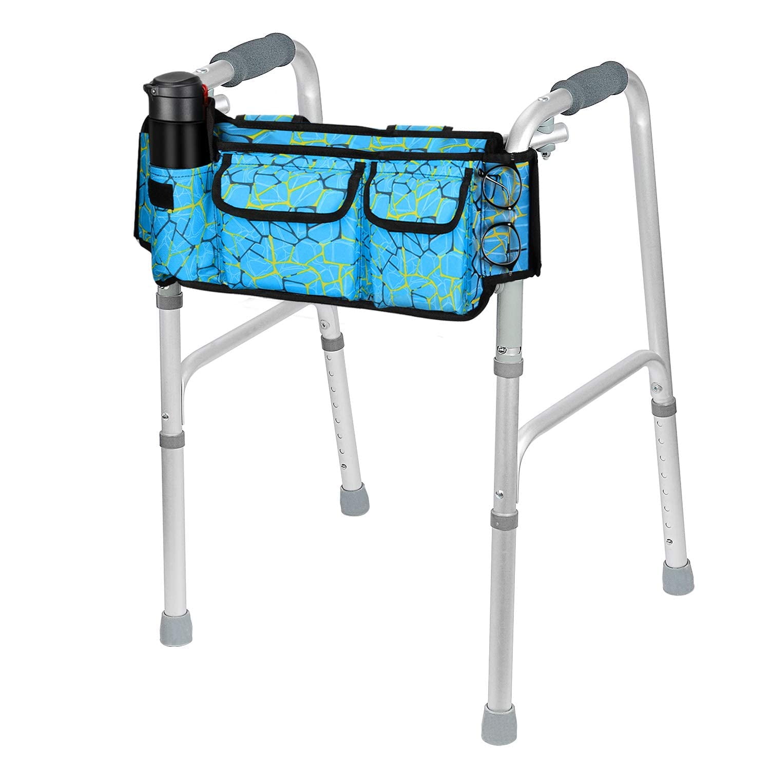 Our walker bag is an elegant choice for organizing and holding your daily essential items in a convenient dual-purpose carry. This walker bag fits most sizes and styles of walkers, rollators, scooters, and wheelchairs. Overall dimension: 23 cm x 45.5 cm the walker bag attaches securely to the front of the walker and keeps your hands and arms free for superior balance and mobility. It has multiple pockets to satisfy all your needs. Three front exterior oxford pockets allow you to quickly access frequently used items like reading glasses, drinks, snacks, and remote control. Two roomy back pockets to store small items and the large zipper pocket can safely you’re your wallet, books, and medical supplies. Made of high-quality 600d oxford and nylon fabric, ensuring it durable and sturdy construct. Water resistant and machine washable. Four sturdy universal Velcro straps not only make it easy to install and remove in seconds but also help hold the bag in place and provide a secure and adjustable fit.