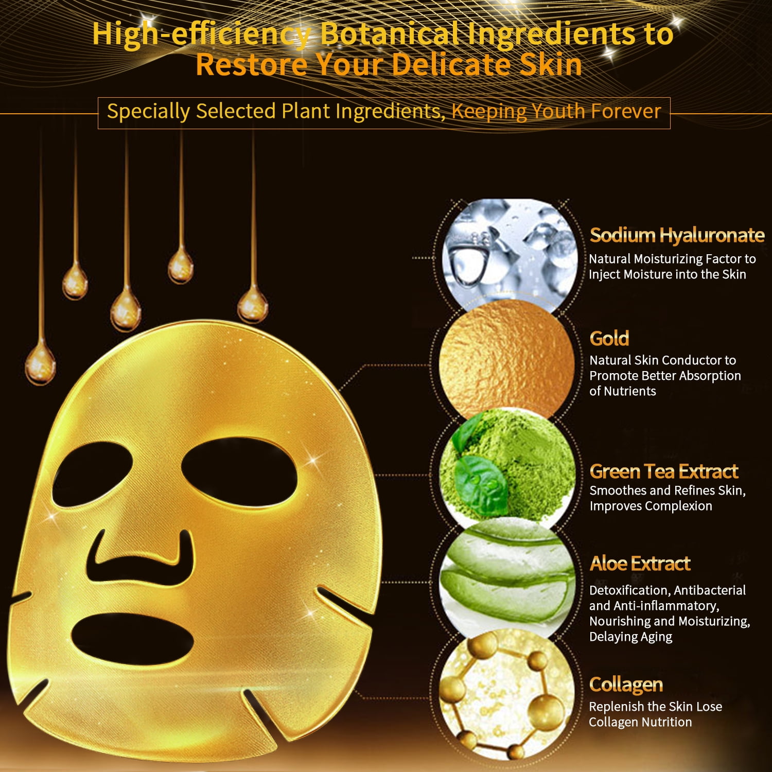 Swan Star 10 piece 24k collagen facial mask 24k gold bio collagen face facial mask lip mask wrinkle tired crow eye treatment collagen masks gold (face, eye, lip) this innovative gold bio-collagen facial mask is formulated with pure gold, natural bio-ingredients, and a hydrating compound to deliver you a more defined, younger and glowing look. This luxurious and natural skin treatment is being used by many spas internationally. Formulated with a proprietary ingredient carrier and moisturizing element which harnesses the power of pure gold and all its healing benefits to the skin. Collagen gold can slow down skin collagen depletion and elastin breakdown. This mask stimulates cellular regrowth at the basal layer to regenerate, combat damaging free radicals, stabilize skin immunity, rehydrate skin, and improve skin elasticity thus reducing the appearance of premature aging. The bio-active ingredients enhance face slimming, sculpting, whitening, and evens out skin tone effectively. Recommendations: for all skin types, especially fatigued and dehydrated skin. Good base enhancement prior to face makeup.