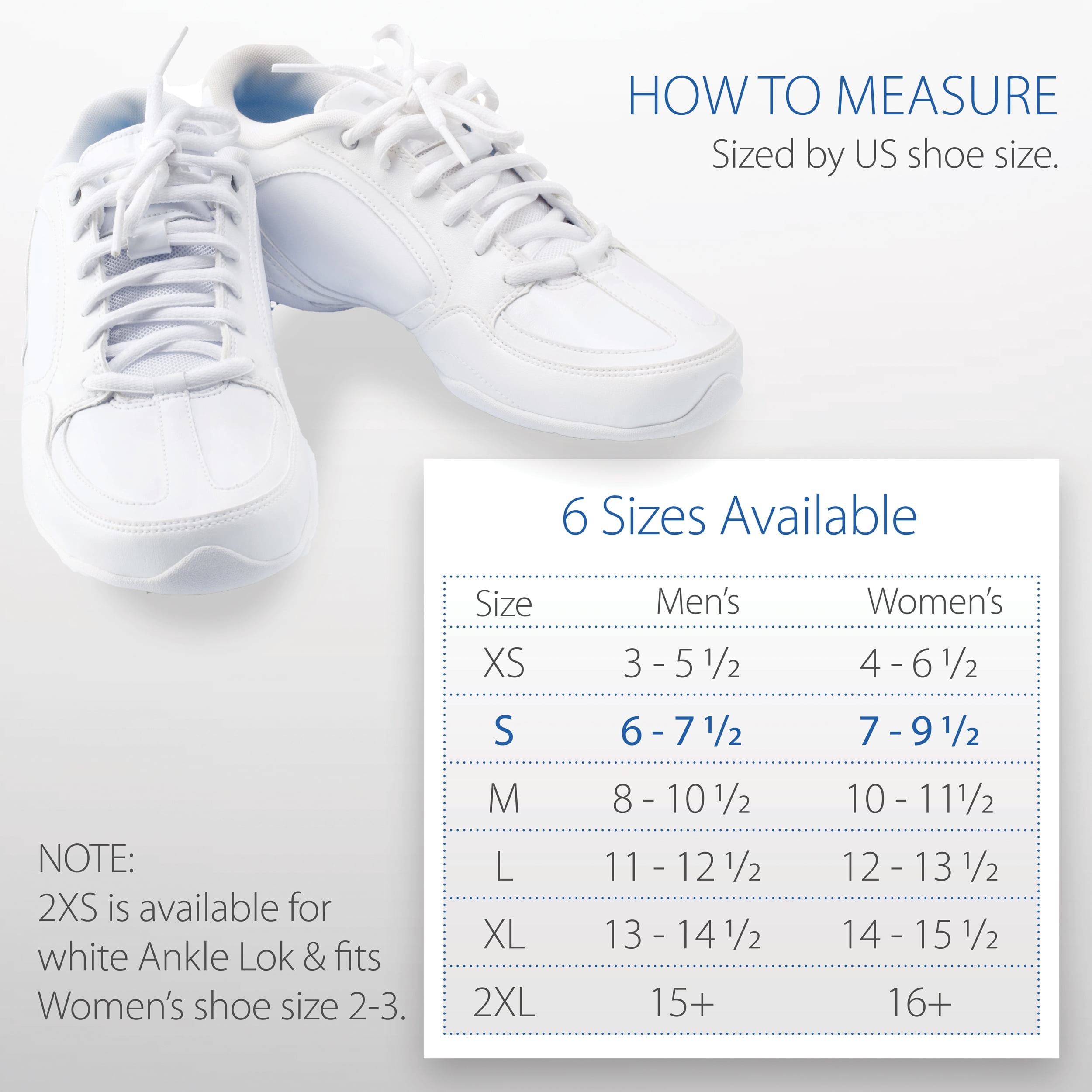 The original "Swede-O" ankle brace white is the #1 choice for ankle protection! Padded tongue option for easy application with a recently injured ankle. The dual eyelets create a "pulley" effect to give you greater leverage so you can lace the brace tighter for a more effective "Ankle Lok". Stainless steel spiral stays are sewn into the medial and lateral sides of the brace for support. The Ankle Lok’s removable side stabilizers offer additional support for weak or injured ankles. The full elastic back is comfortable against the Achilles tendon and helps reduce irritation and potential for blistering.