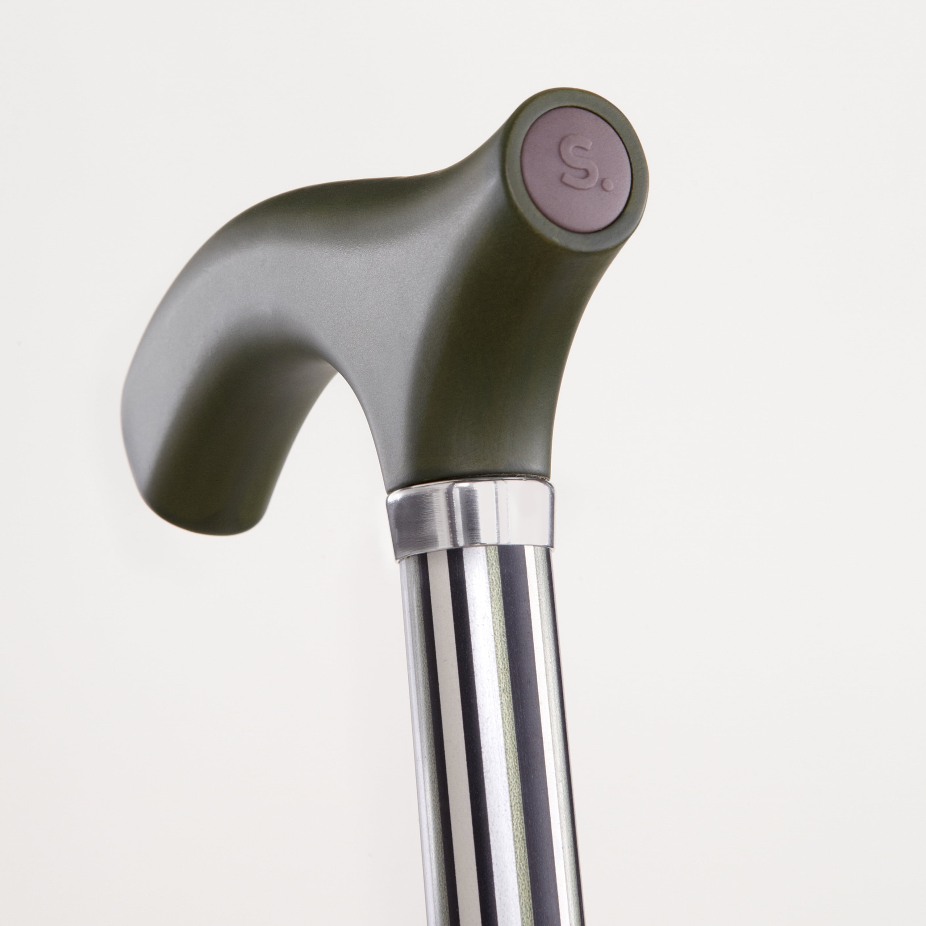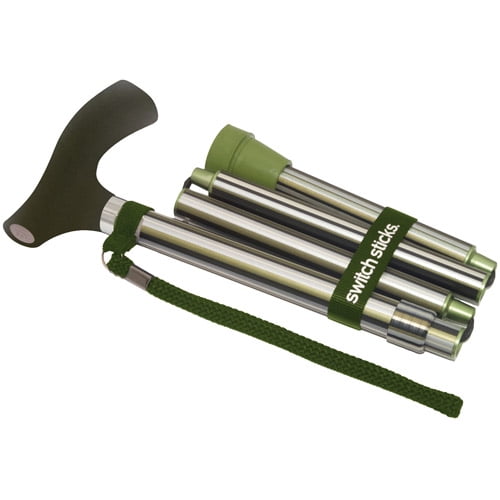 - Brand Name: Brazos Walking Sticks Theme: Huntington Product Type: Folding Walking Stick Material: Aluminum Number in Package: 1 pk Width: 5.25 in. Color: Green Length: 32-37 in.