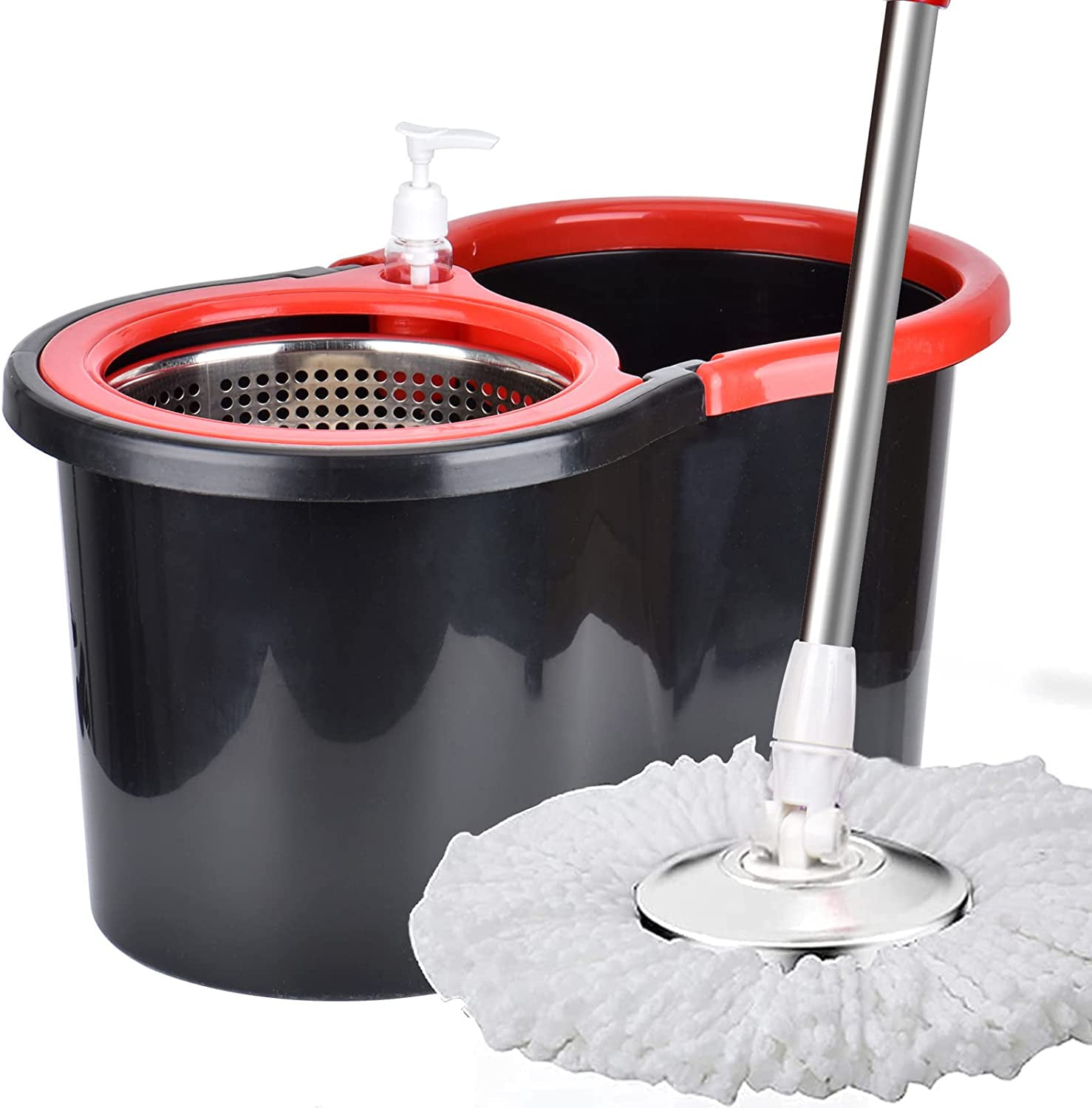 - Upgraded Self-wring Spin Mop: Stainless steel mop bucket and spin mop, rustproof and durable. There is no need to touch dirty water or squeeze a dirty mop.