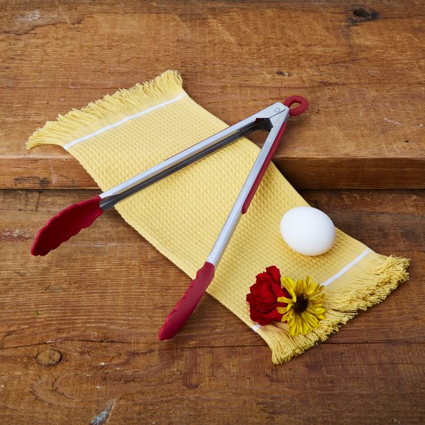Update your cookware collection with stylish pieces like The Pioneer Woman 12-Inch Silicone and Stainless Steel Locking Tongs. This handy kitchen utensil doesn’t just boast a bold red color that adds attention-grabbing vintage-inspired style to any kitchen, they’re also a perfect solution for flipping or grabbing a variety of foods. The tong’s durable stainless-steel construction and silicone tips make them ideal for a wide variety of low- to medium-heat cooking needs and their long 12-inch size makes them great for use in high-heat situations where you need to keep your hands further away from the hot cooking surface as well. When the tongs are on standby, you can keep them closed or open as needed by utilizing their locking feature. Then, once you’ve finished cooking, they can be easily cleaned up from a spending a cycle in the dishwasher. Making delicious homecooked meals is easy when you have high-quality kitchen utensils like The Pioneer Woman 12-Inch Silicone and Stainless Steel Locking Tongs.