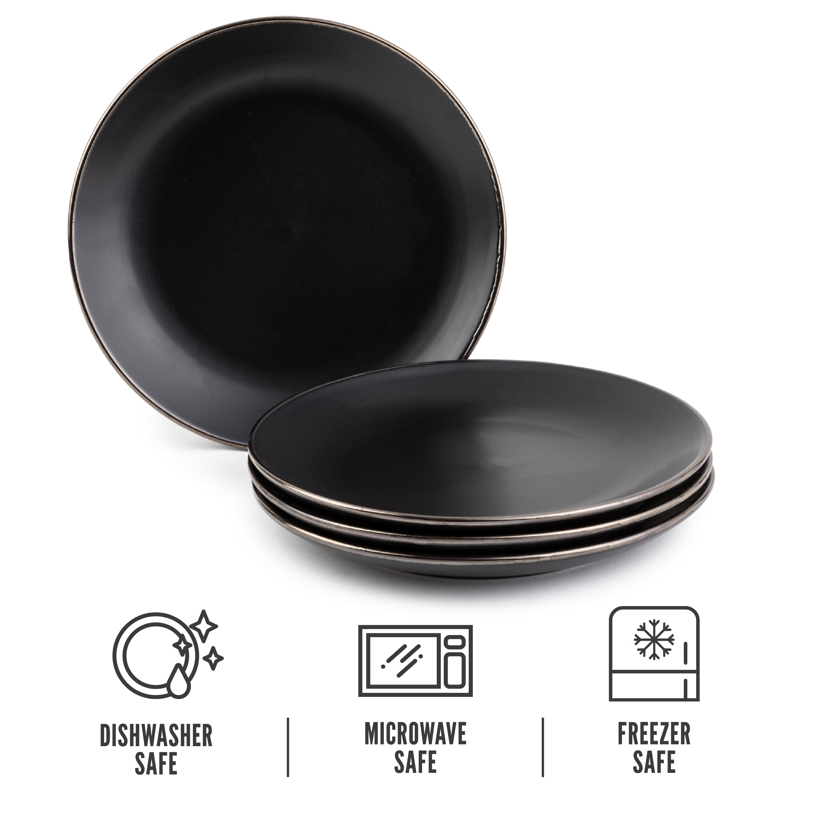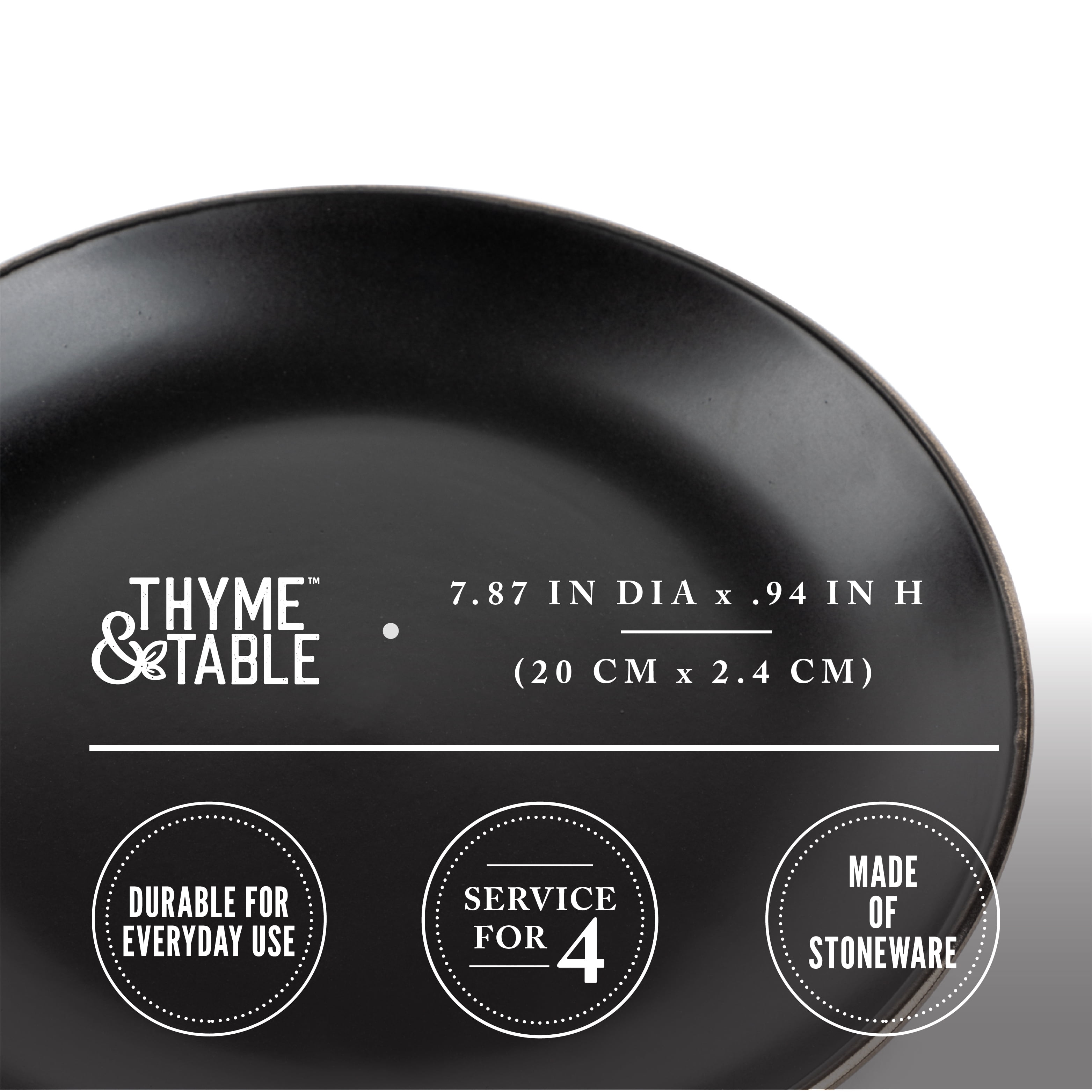 Thyme & Table Dinnerware Black Onyx Stoneware Salad Round Plates, 4 Pack