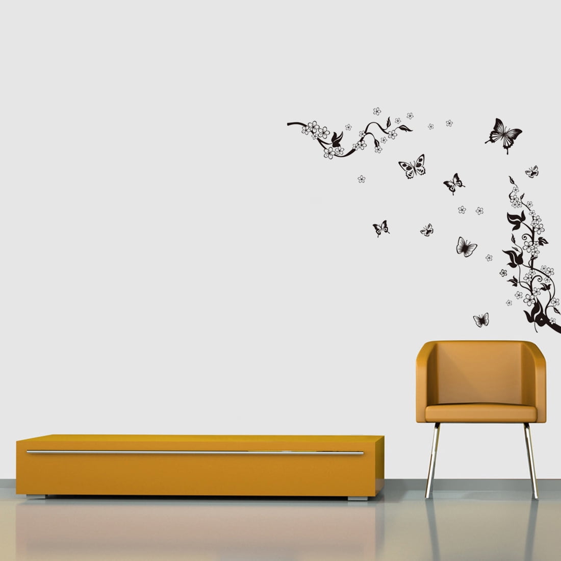 Home Decor Black Self Adhesive PVC Butterfly Flowers Wall Sticker Decal: