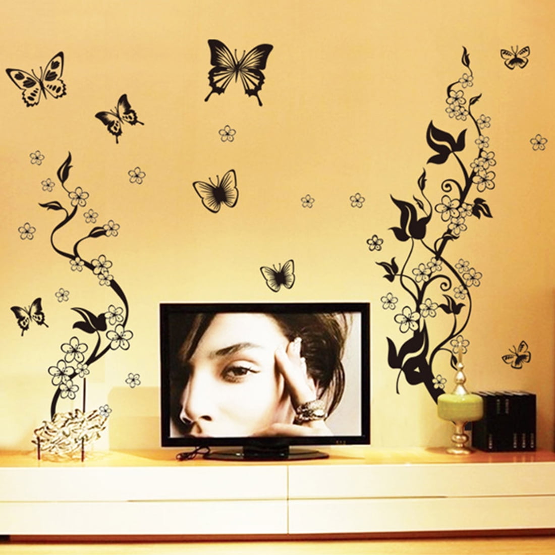 Product NameWall StickersPatternFlowers, ButterflySheet Size60 x 90cm/ 24" x 35" (L*W)MaterialPVCColorBlackNet Weight179gPackage Content1 x Wall Stickers