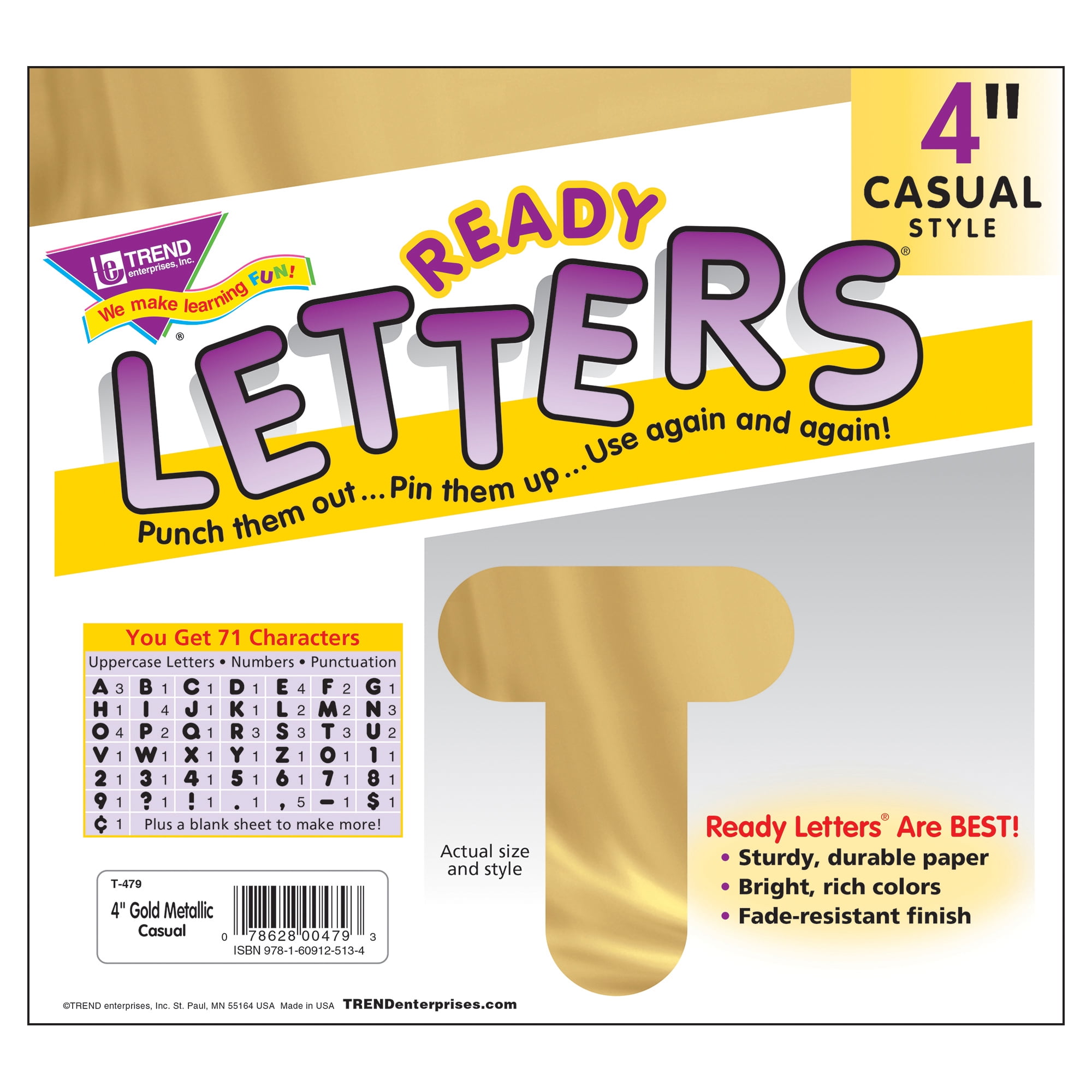 TREND Gold Metallic 4-Inch Casual Uppercase Ready Letters, 216 Pieces