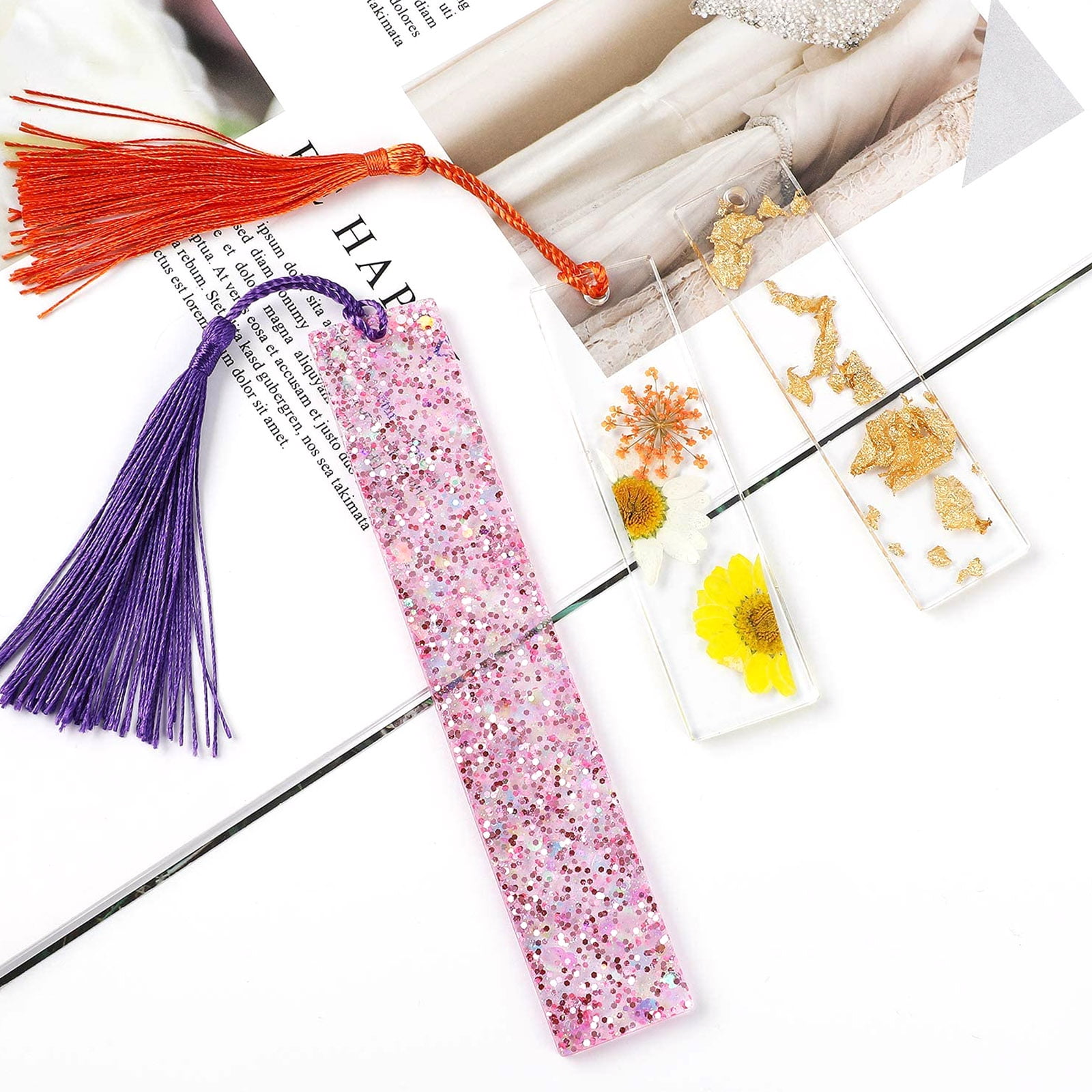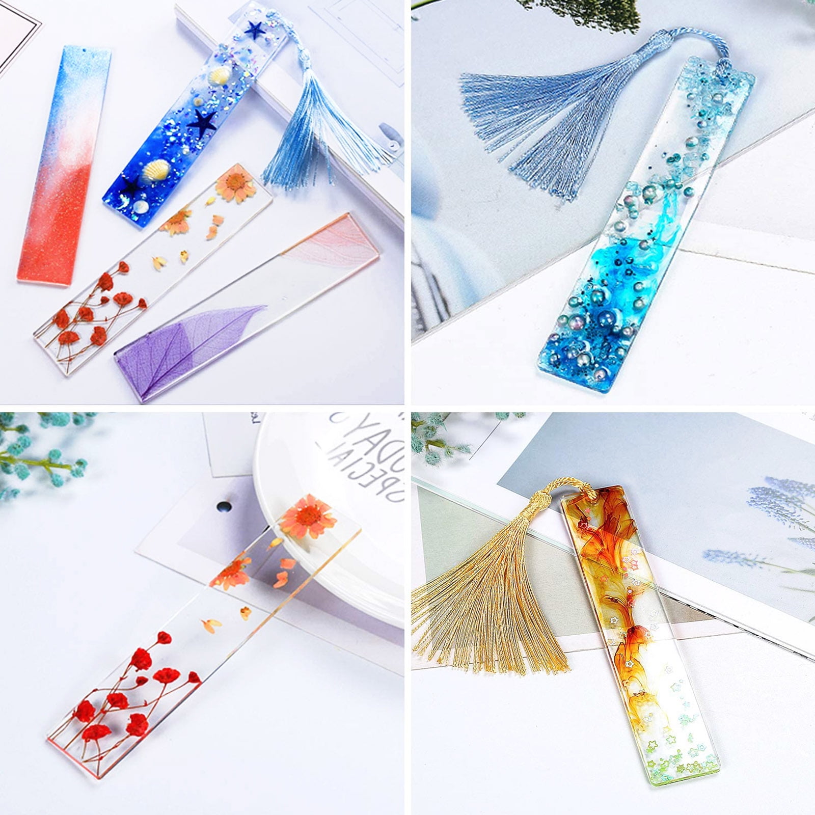 Our bookmark resin mold set is made of silicone, durable, reusable, flexible, easy to use, and clean. The workmanship of silicone bookmark molds is delicate, the inside is smooth, and easy to de-mold, so the bookmarks produced are smooth and flat, and will not appear an uneven flaw. Its working temperature range from -40°to 230°, heat-resistant, and cold-resistant, so it is safe to use in ovens, microwaves, refrigerators, etc. Moreover, the design of the pin in the transparent rectangle bookmark epoxy casting molds, makes the pendant produced with a hole, you can get across with string or chain. it’s perfect for beautiful bookmarks if you are a book lover. You can also use it to create other craft accessories for keychains, handbags, car pendant decorations, decorate your room, or send it to your friends as a gift.