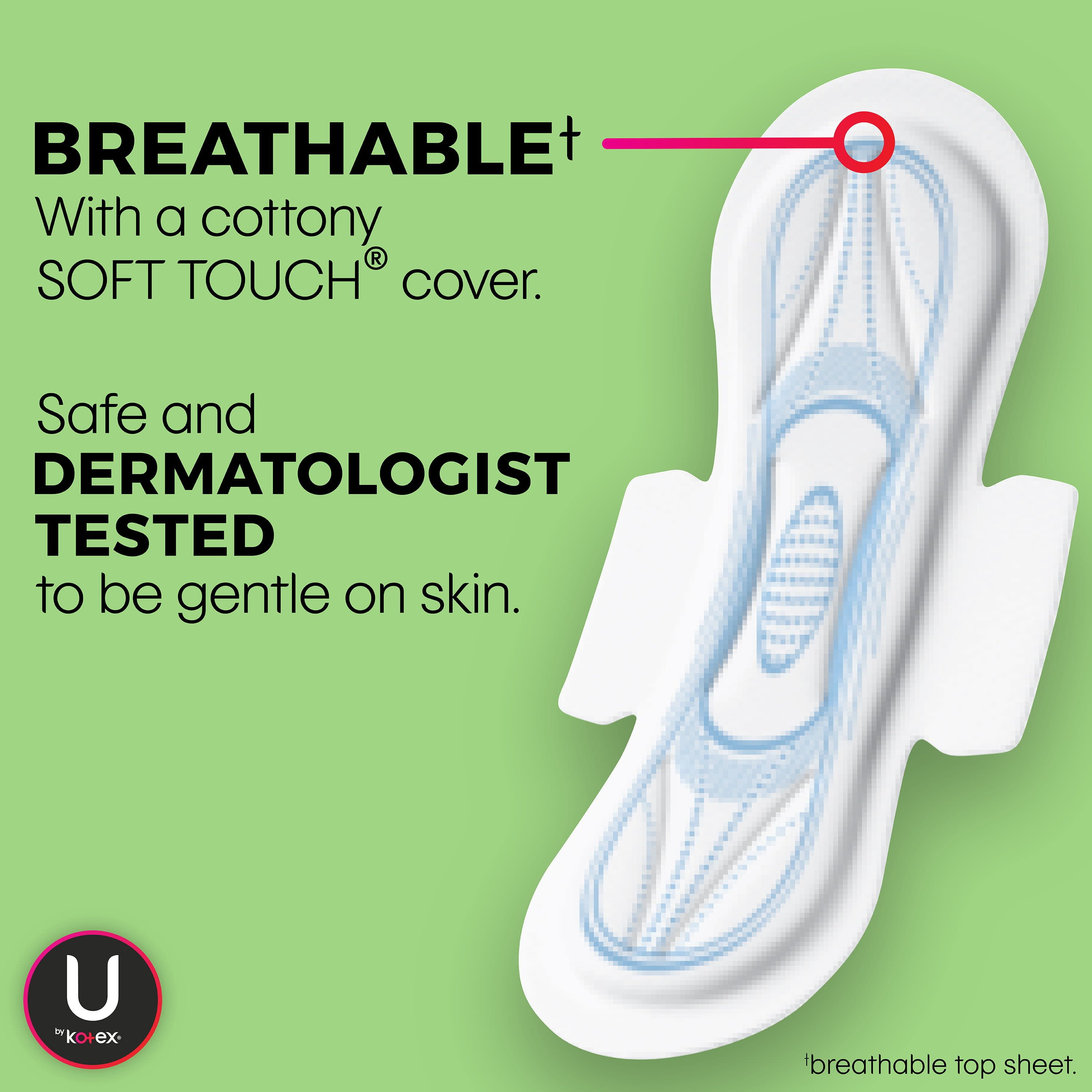 U by Kotex Security Maxi Feminine Pads with Wings, Overnight Absorbency, Unscented, 28 Count