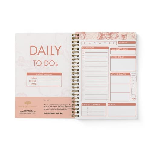 Undated to Do List Daily Task Checklist Planner Time Management Notebook by Bright Day Non Dated Flex Cover Spiral Organizer 8.25 x 6.25 Habit Tracker (Floral)None