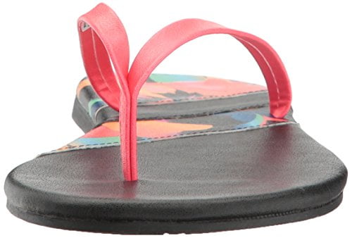 Synthetic leather strap offers feminine silhouette and stylish look. Synthetic leather footbed with color pop provides cushioned comfort. Anatomical c