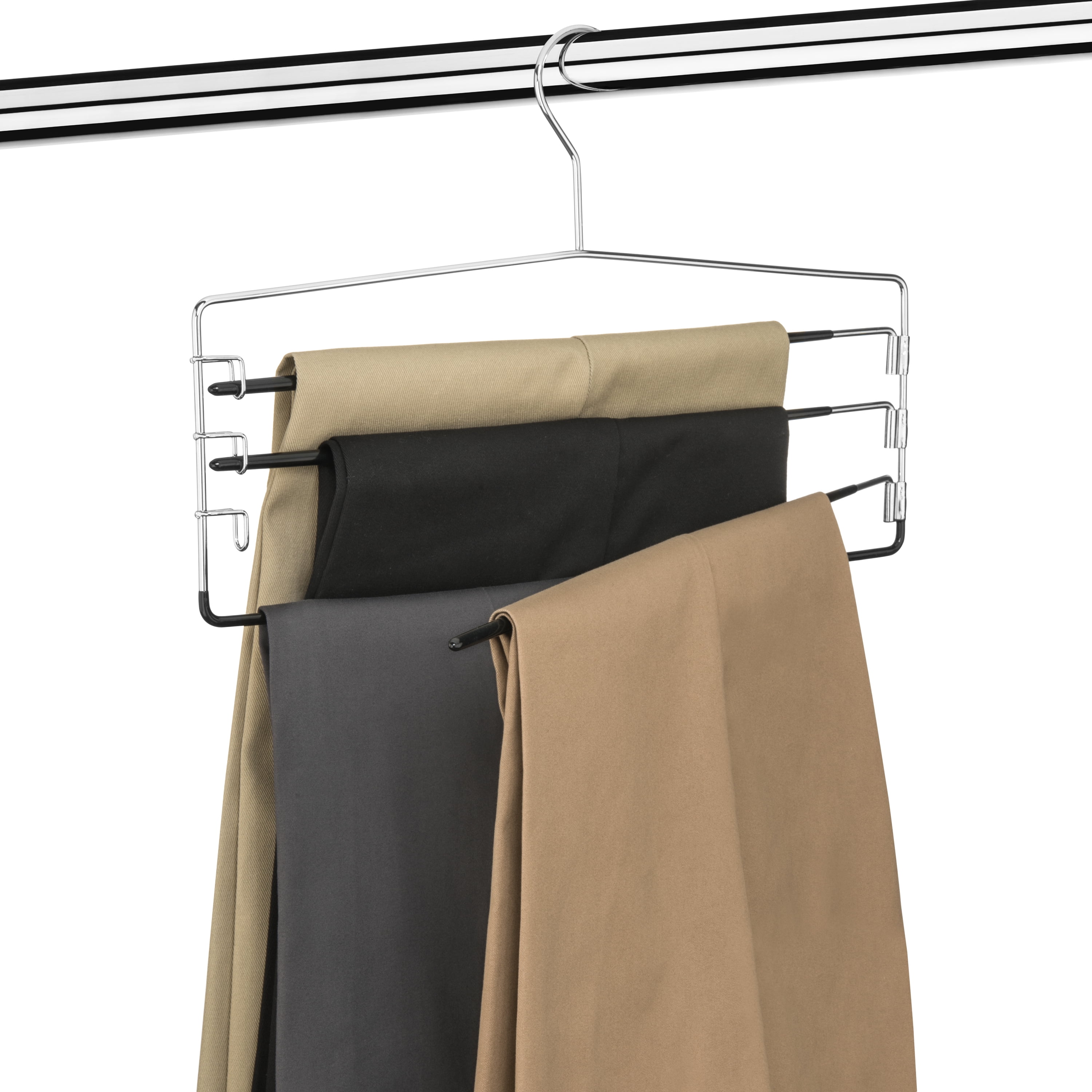 The USTECH 4-Tier Pants Organizer Hanger was designed with space saving in mind. Though its primary use is the ability to hang 4 pairs of pants, it can be used to organize various other items such as skirts, shorts, leggings, undergarments, ties, scarfs, towels, and masks, amongst many other things. This is an essential space saver for small closets. The non-slip swing arms provide easy access to your garments while them from sliding off the hanger. Made with heavy-duty chromed steel to ensure that the hanger can hold garments on all tiers at the same time. The hanger’s use is not limited to your closet. Use it in the bathroom for towels. In the pantry for dish cloths and aprons. In the laundry room to hang dry garments. In the garage for rags and cloths.