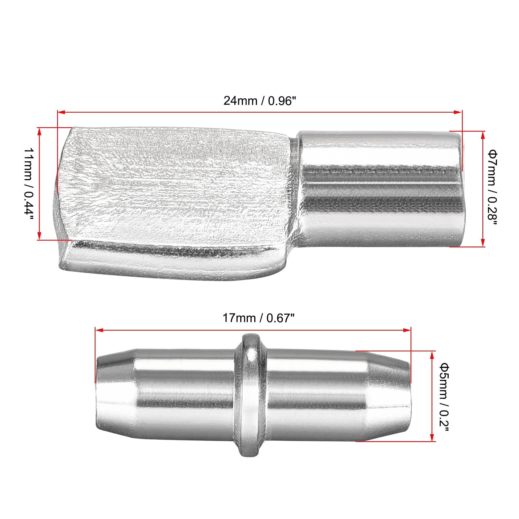 Uxcell Shelf Support Peg 3 Styles Furniture Shelf Bracket Pegs 0.2" 0.24" 0.28" Pin with Hole Silver Tone , 60pcs
