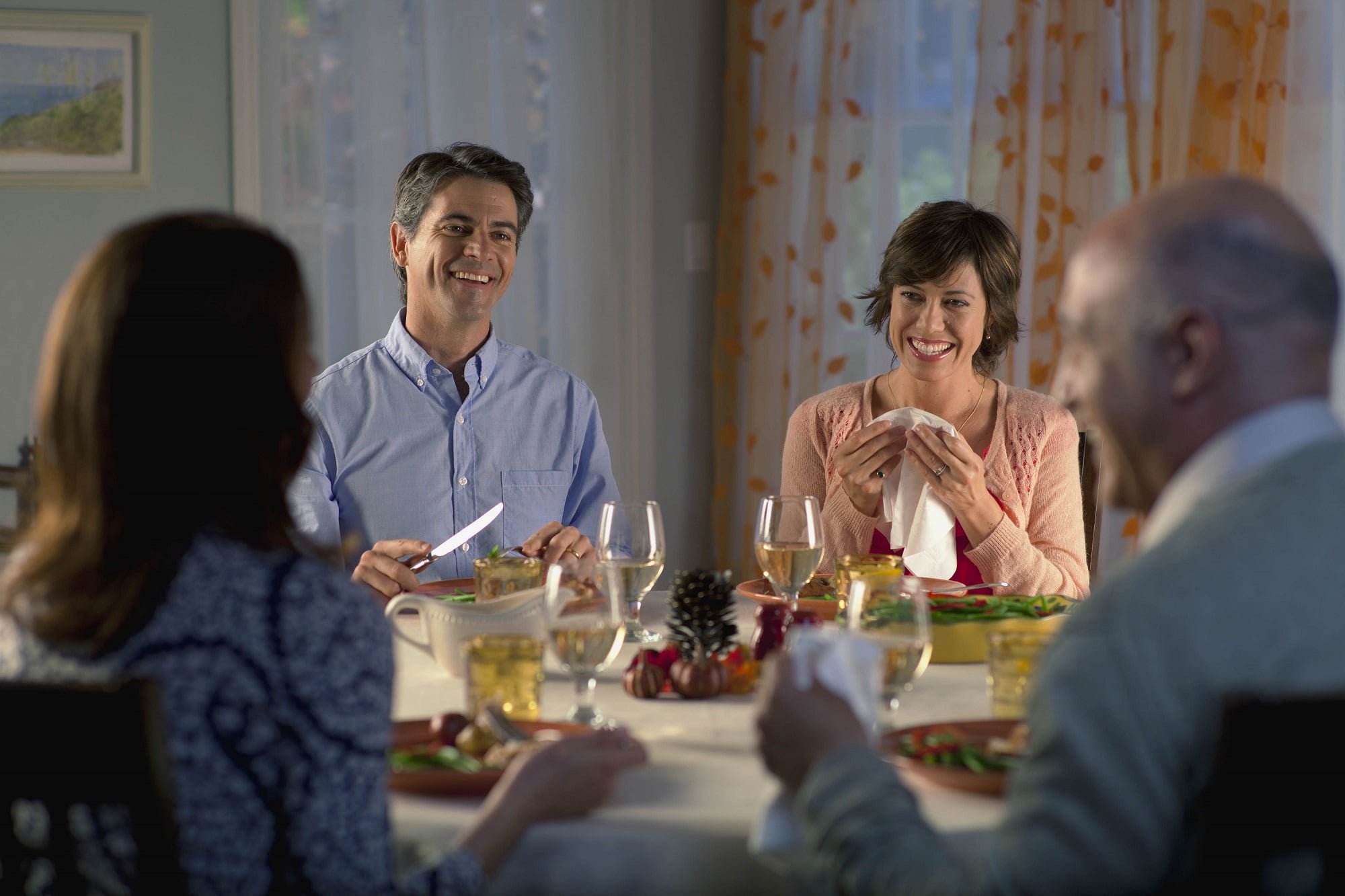 - Vanity Fair dinner napkins embossed with stylish Monterrey shell design