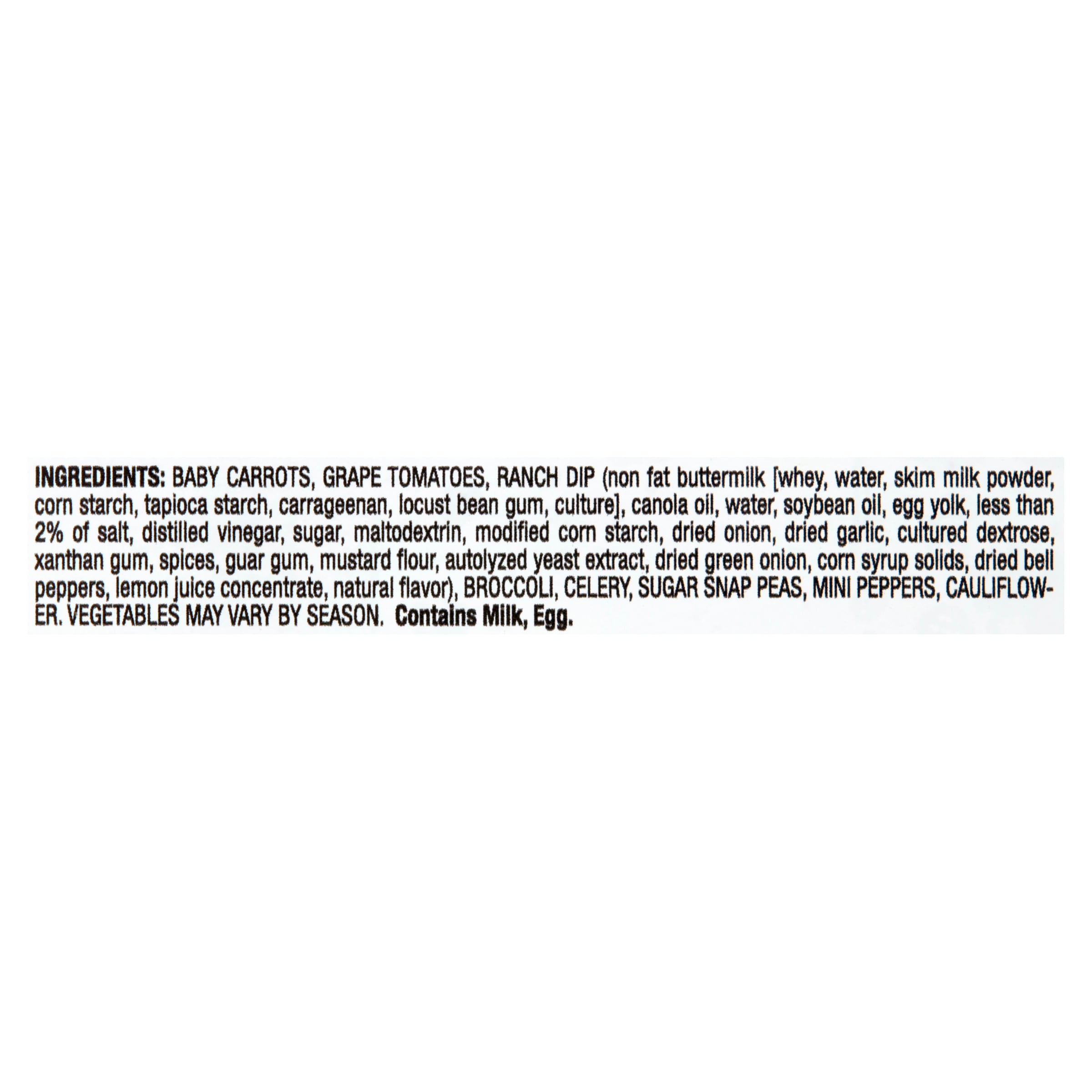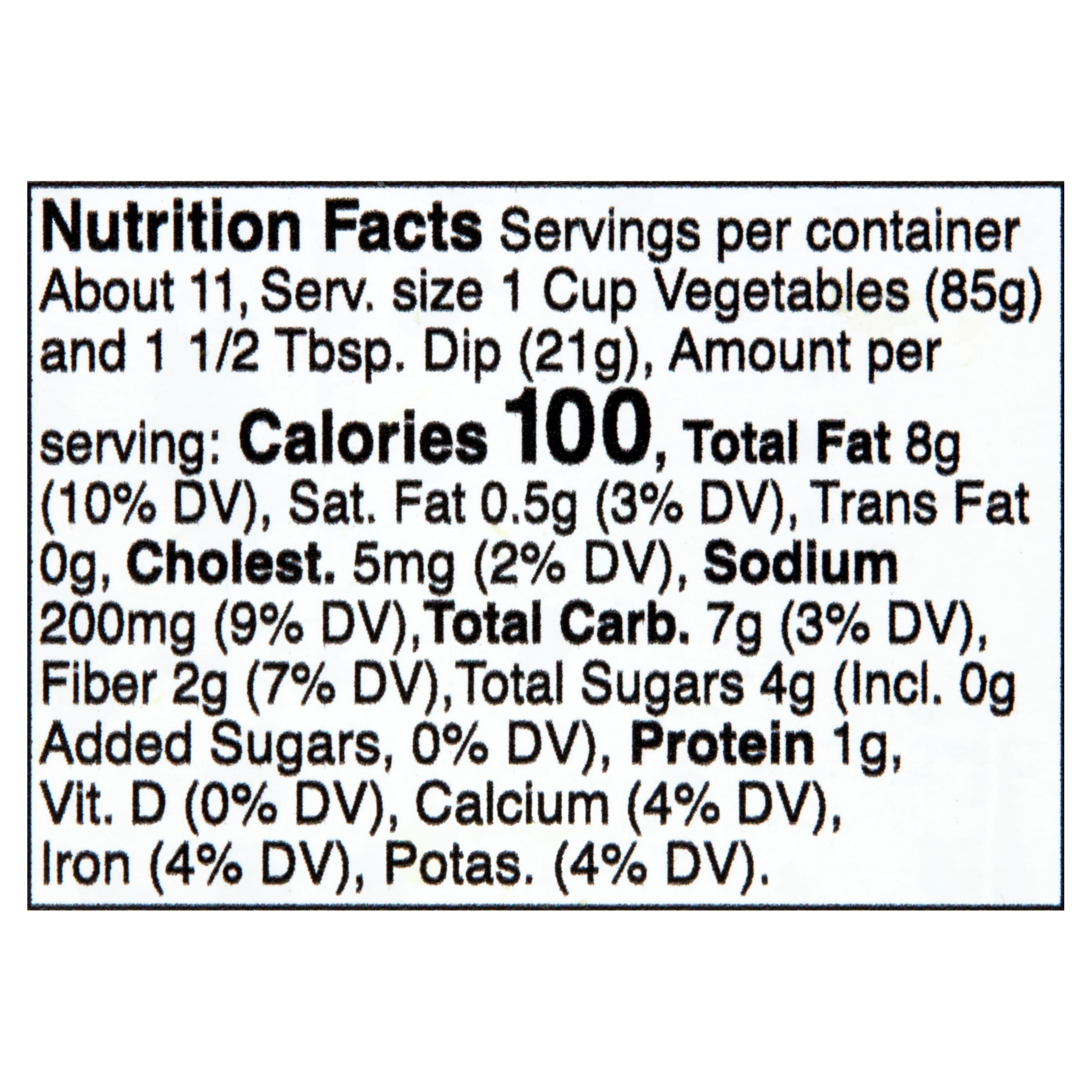Enjoy a healthy snack with an assortment of popular vegetables in this Vegetable Tray from Walmart. It contains carrots, grape tomatoes, celery, sugar snap peas and broccoli arranged in separate partitions in a transparent tray with a lid. Dip them in the buttermilk ranch and enjoy the taste. These different vegetables provide you with many essential nutrients you need every day, along with a medley of different flavors. They are ready to eat, are a convenient option for snacking and can be served as appetizers at parties.