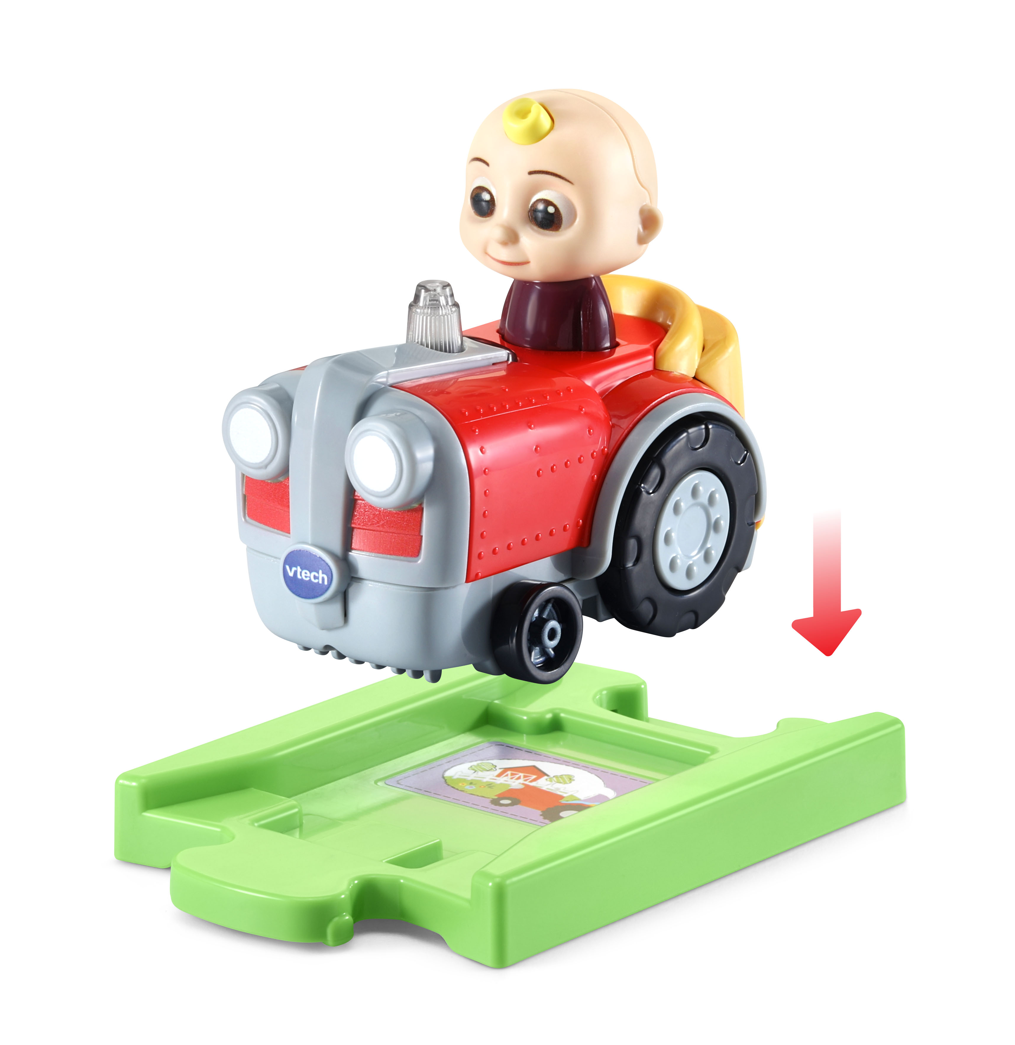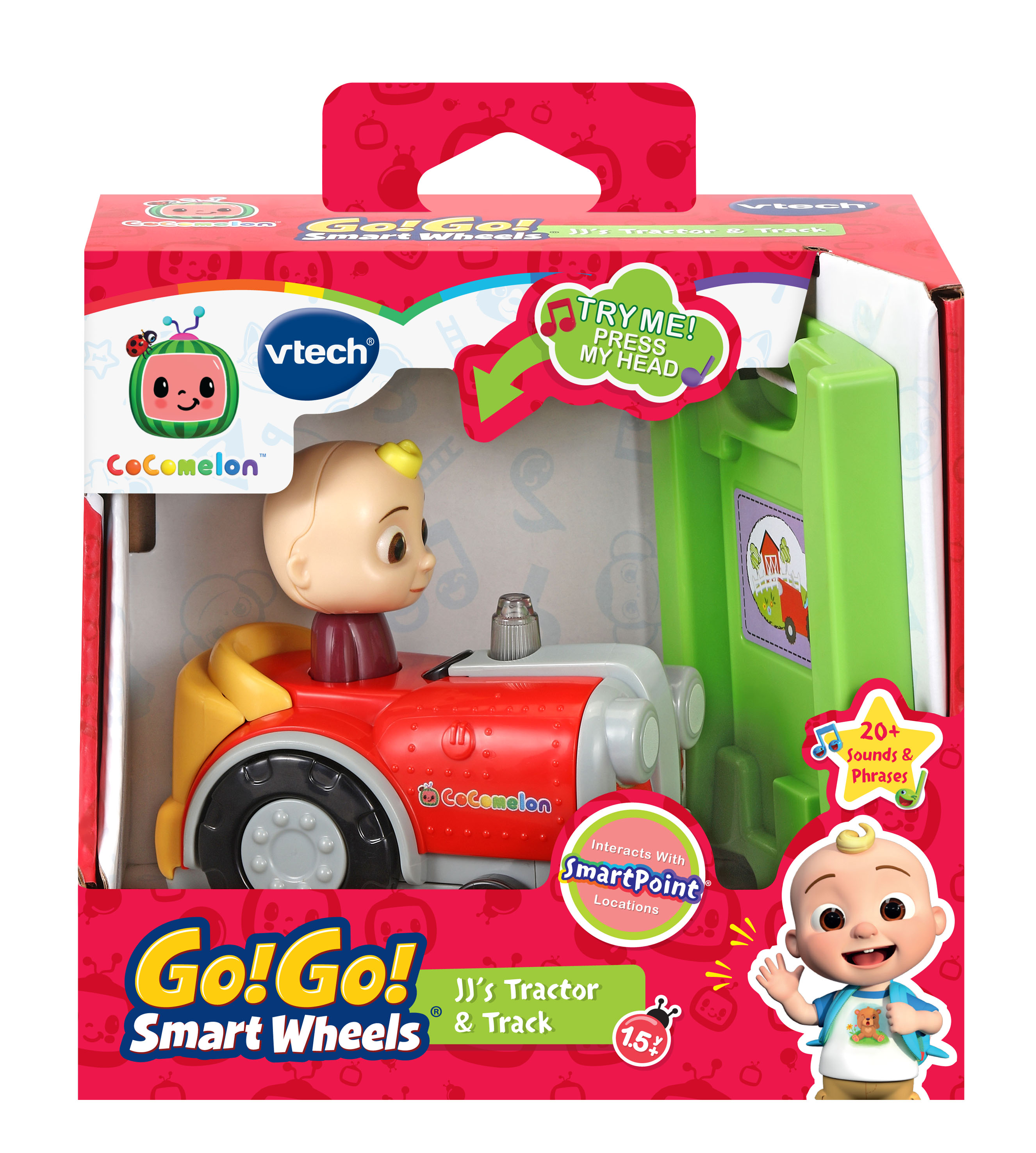 Old MacDonald had a song in his heart. And so does JJ! Rumble around the farm with the tractor, and your childs imagination will go hog wild. Pat JJs head to hear his voice and sing-along songs from the show about food and animals. Try to guess the animal by the sound it makes. Is it a horse? Sheep? Dog? Explore cause and effect by driving JJ over the picture on the track piece. This SmartPoint location lets JJ play more songs, sounds and phrases from the show that immerse little ones in a world of pretend play. JJs Tractor & Track are part of a closed-track system. Add Codys Bus & Track (sold separately) and play together for fun with family and friends. Come play! Intended for ages 1.5+ years. Requires 2 AAA batteries. Batteries included for demo purposes only. New batteries recommended for regular use.