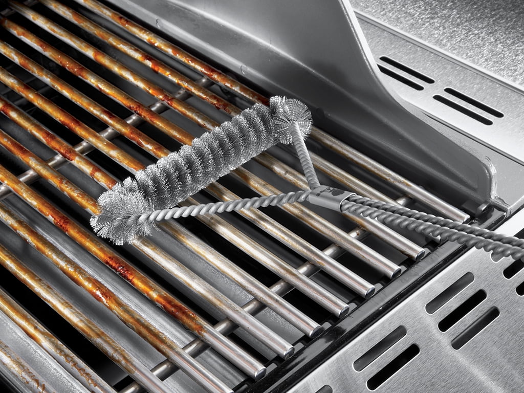 Whether you cook on a gas or charcoal barbecue grill, you can use the Weber 3 Sided 21 inch Grill Brush to keep your grates free of food debris. With it, you can easily get to hard-to-reach spots between the cooking grate rods, as well as in tight spaces at the edges of the cooking grates. This handy and essential cleaning tool has an ergonomic handle to give you a secure grip.