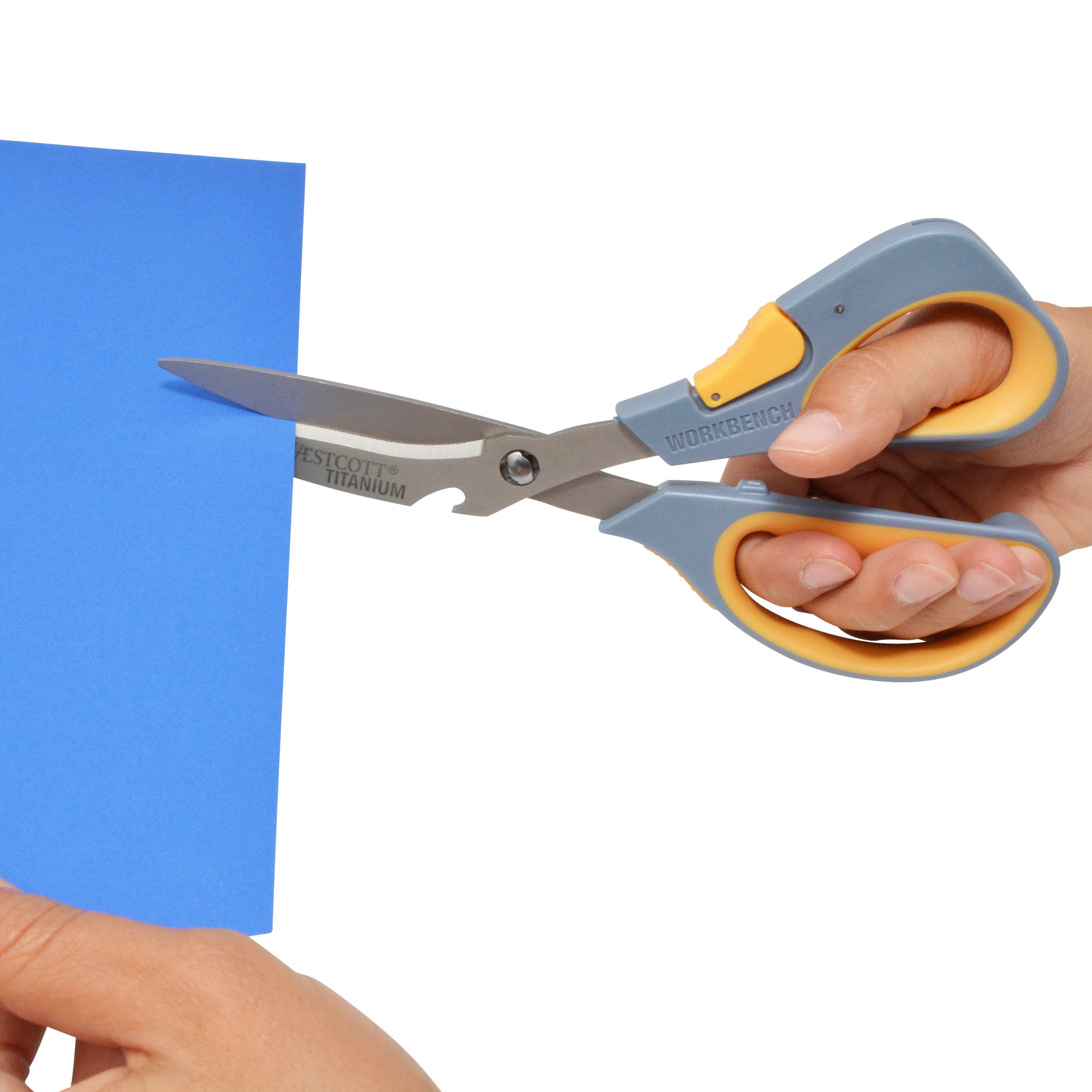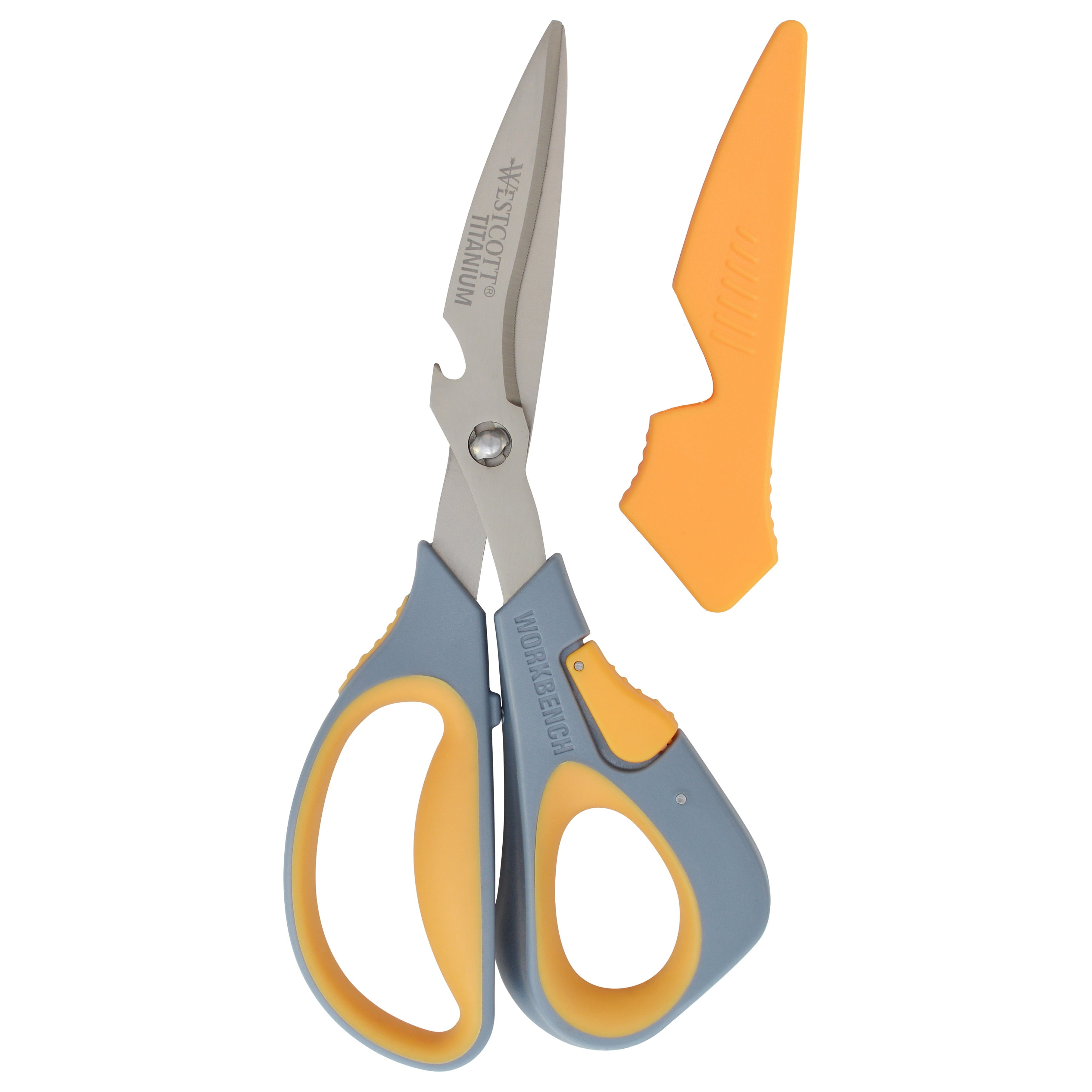 Westcott Titanium Workbench Scissors, 8′, Soft Handle, Gray and Yellow, 1-Count