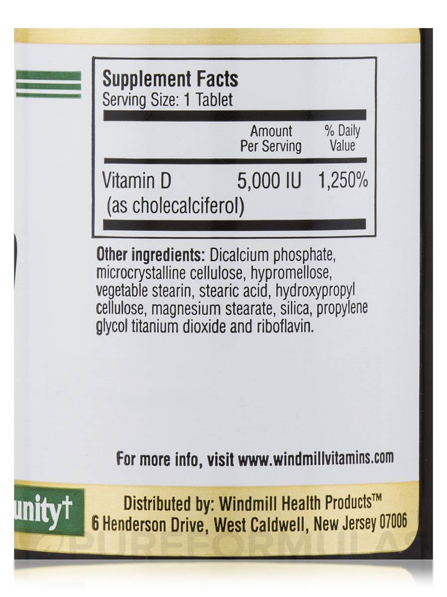 - Windmill vitamin D formula provides you with 5,000 IU of cholecalciferol per caplet.