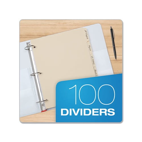 Categorize documents in binders and reference information faster Bulk tab divider sheets allow you to sub-divide and then quickly access individual sections of a ring binder. Three-hole punched tabs offer plain, die cut fifth-cut tabs in assorted positions. Rounded corners with 3/8 in tab extension. Index Divider Style: Customizable Index Divider Size: 11 x 8.5 Punched/Unpunched: 3-Hole Punched For Use In: Ring Binders.