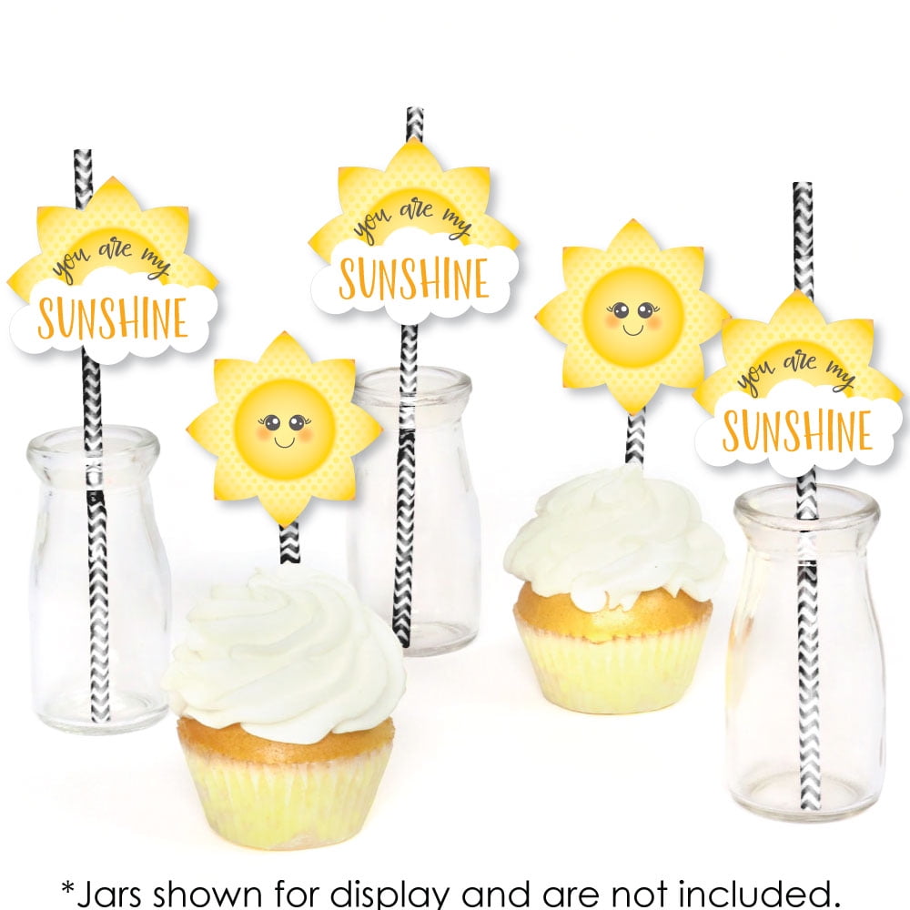 - EASY PARTY DECORATIONS: You Are My Sunshine straw décor will add a touch of cuteness to your baby shower or birthday party tables. Bright sun straw décor will also look great at your beverage bar. Use these adorable sunshine accessories as straws or swizzle sticks. The paper straws can also be cut in half and used as cupcake picks once the shaped cut out is attached.