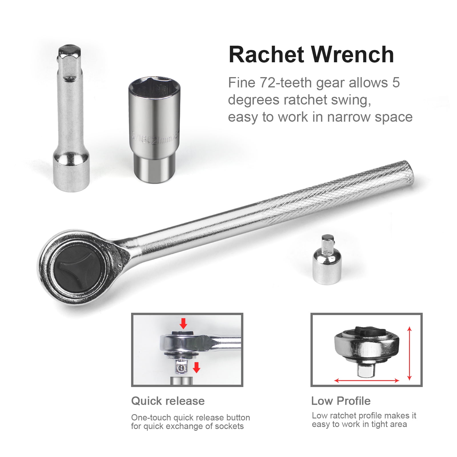 3.Professional: 72-tooth ergonomic reversible ratchet handle and insulated nut driver spinner handle.