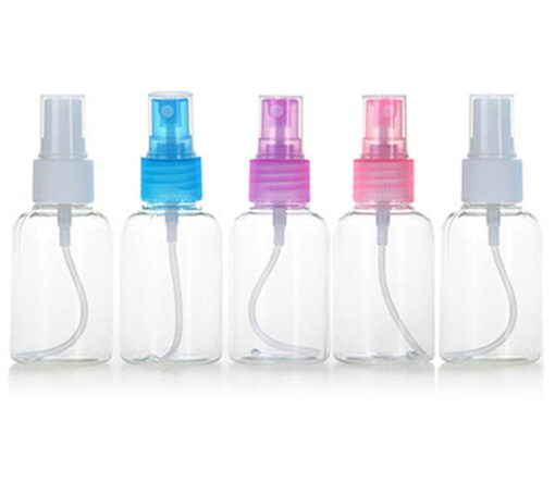 5pcs 50ml Empty Plastic Spray Bottles Mini Clear Portable Refillable Mist Spray Bottle with Lid, Reusable Travel Containers for Essential Oils, Perfume (Random Color) – by Viemira