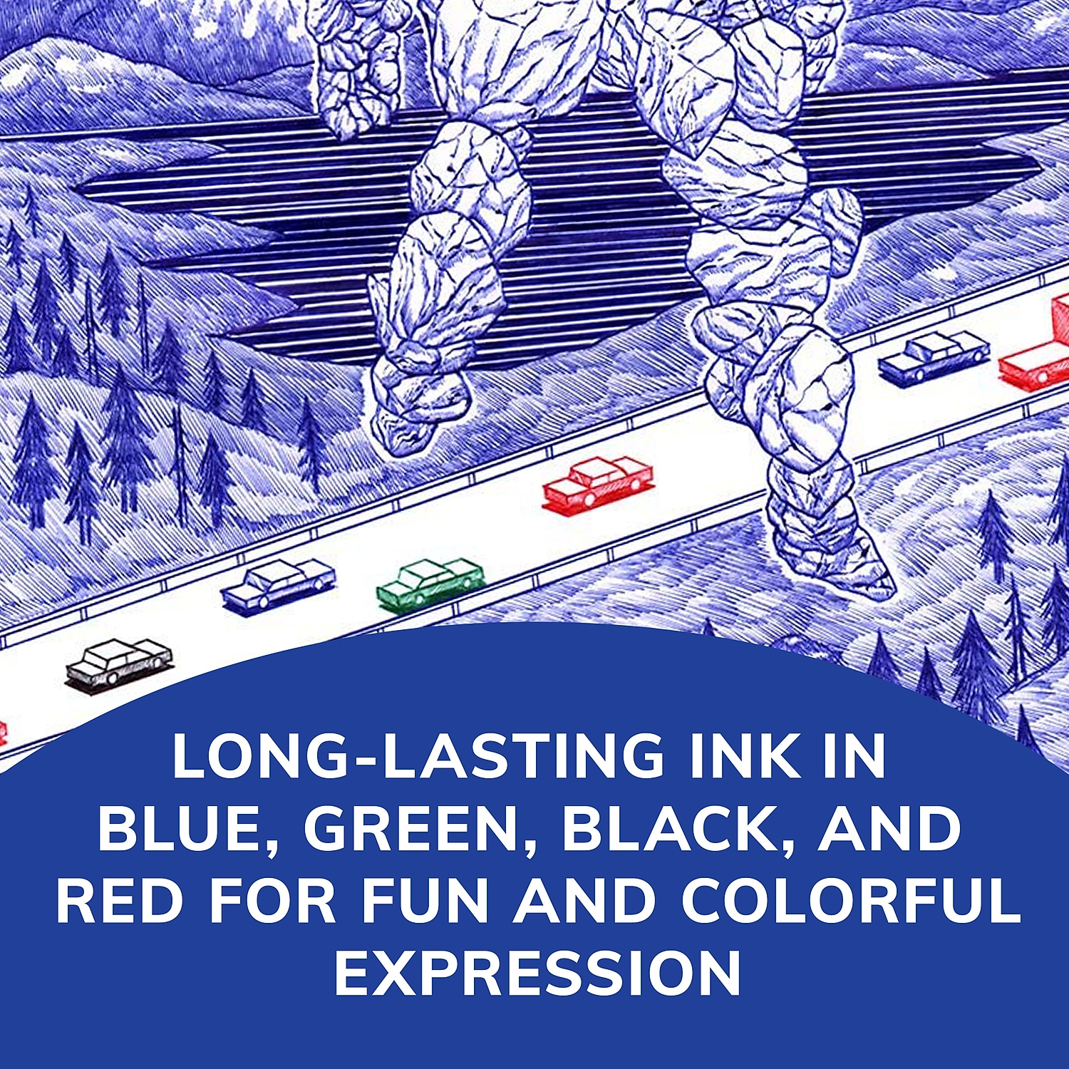 - One 1-count pack of BIC 4-Color Ballpoint Pens. Colorful pens for notetaking, doodling or bullet journaling.