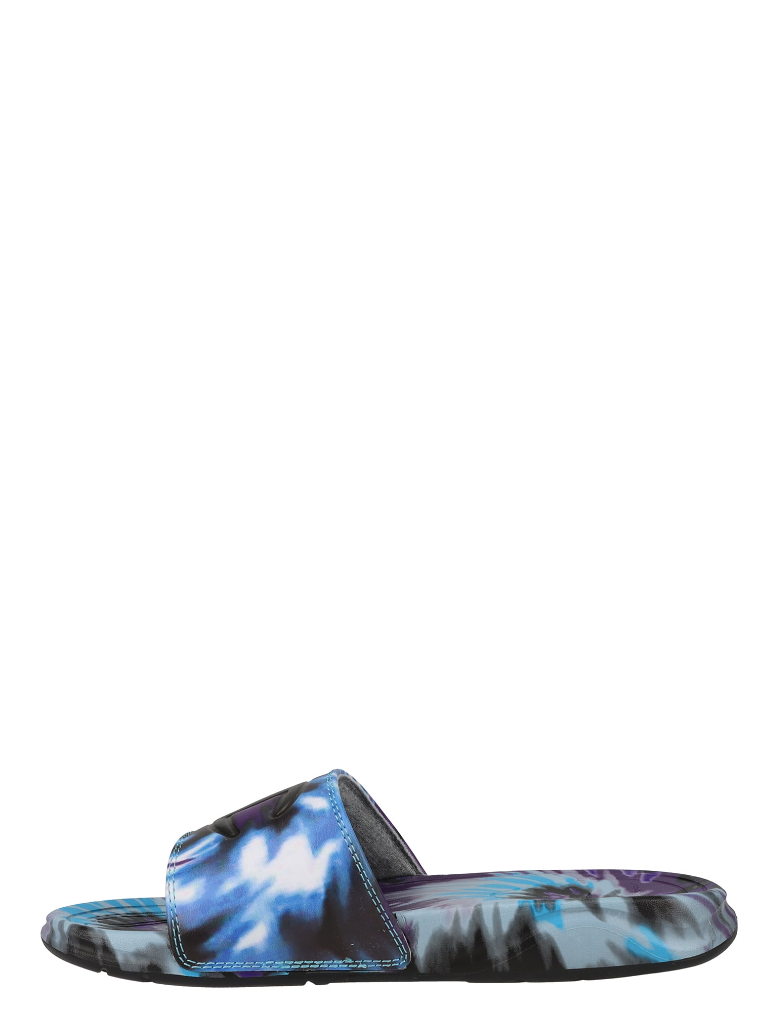 Stepping out in style just got even easier with the Champion Mega tie dye slide sandal. These go to slides have a soft thick band with a bold embossed logo, lightweight contoured footbed, and an over tie dye print, perfect for sports, the beach, poor or vacation!