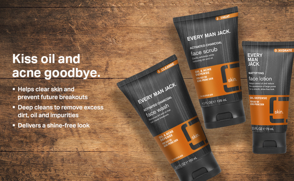 Every Man Jack Activated Charcoal Oil Defense Mattifying Face Lotion for Men, Naturally Derived, 2.5 oz