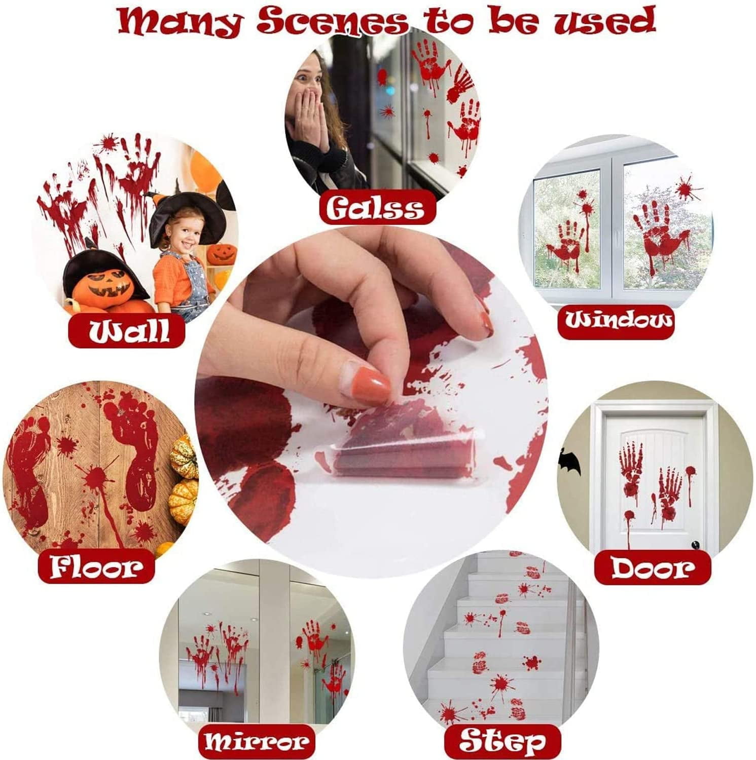 - The vivid bloody red color, real looking, human-size creepy bloody handprint and footprints stickers will add to your horror and spooky Halloween decorations.